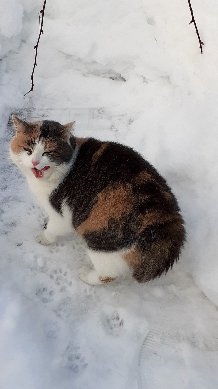 В саду хорошо, кошки видно заперты - только их следы на дорожках. Шла обратно с баночкой огурчиков и все-таки грохнулась, это ужас, никогда этой частью тела не падала. Главное не тошнит, остальное через 1-1,5 месяца заживет. (Знаю, когда упала на копчик....)