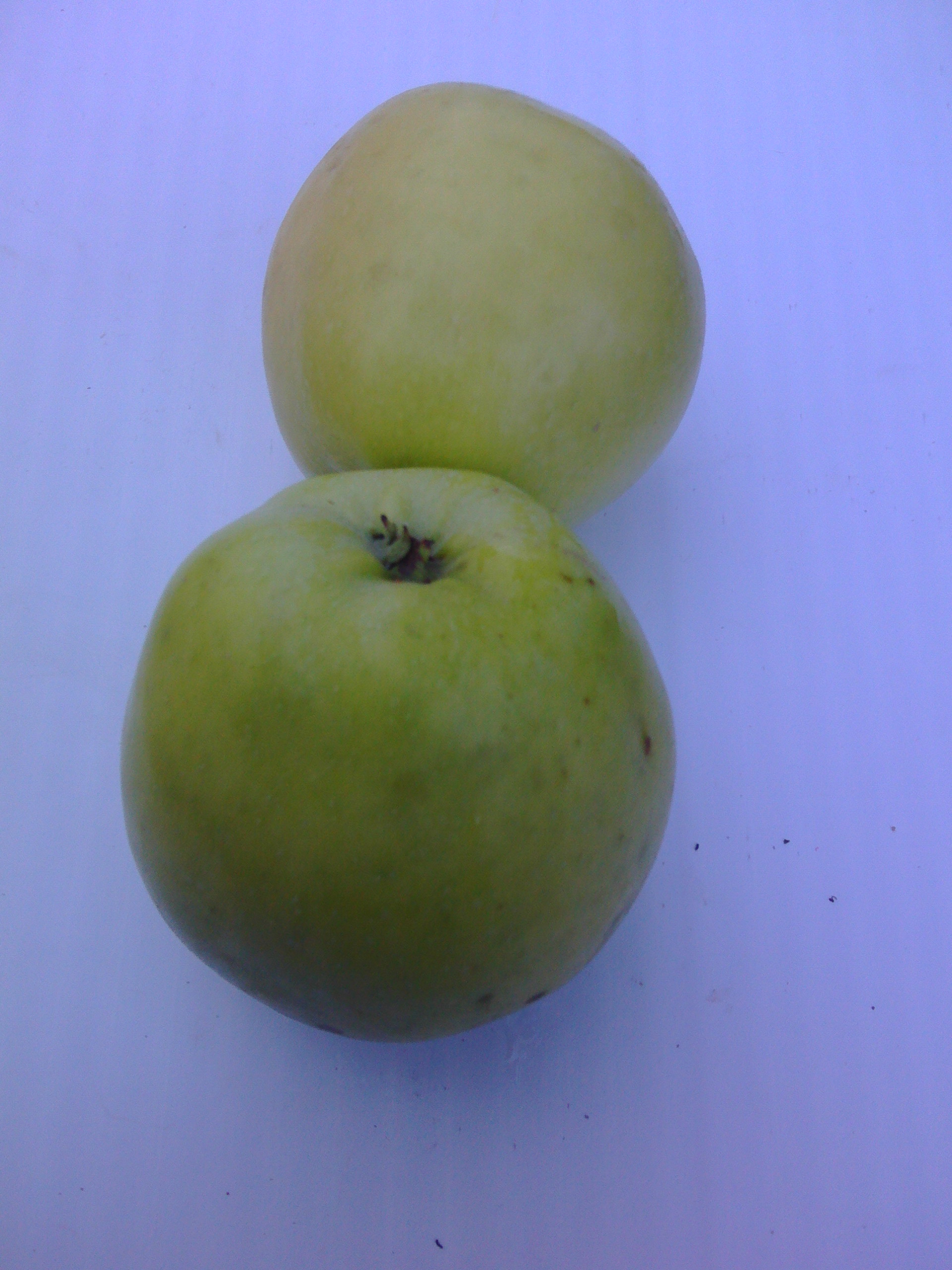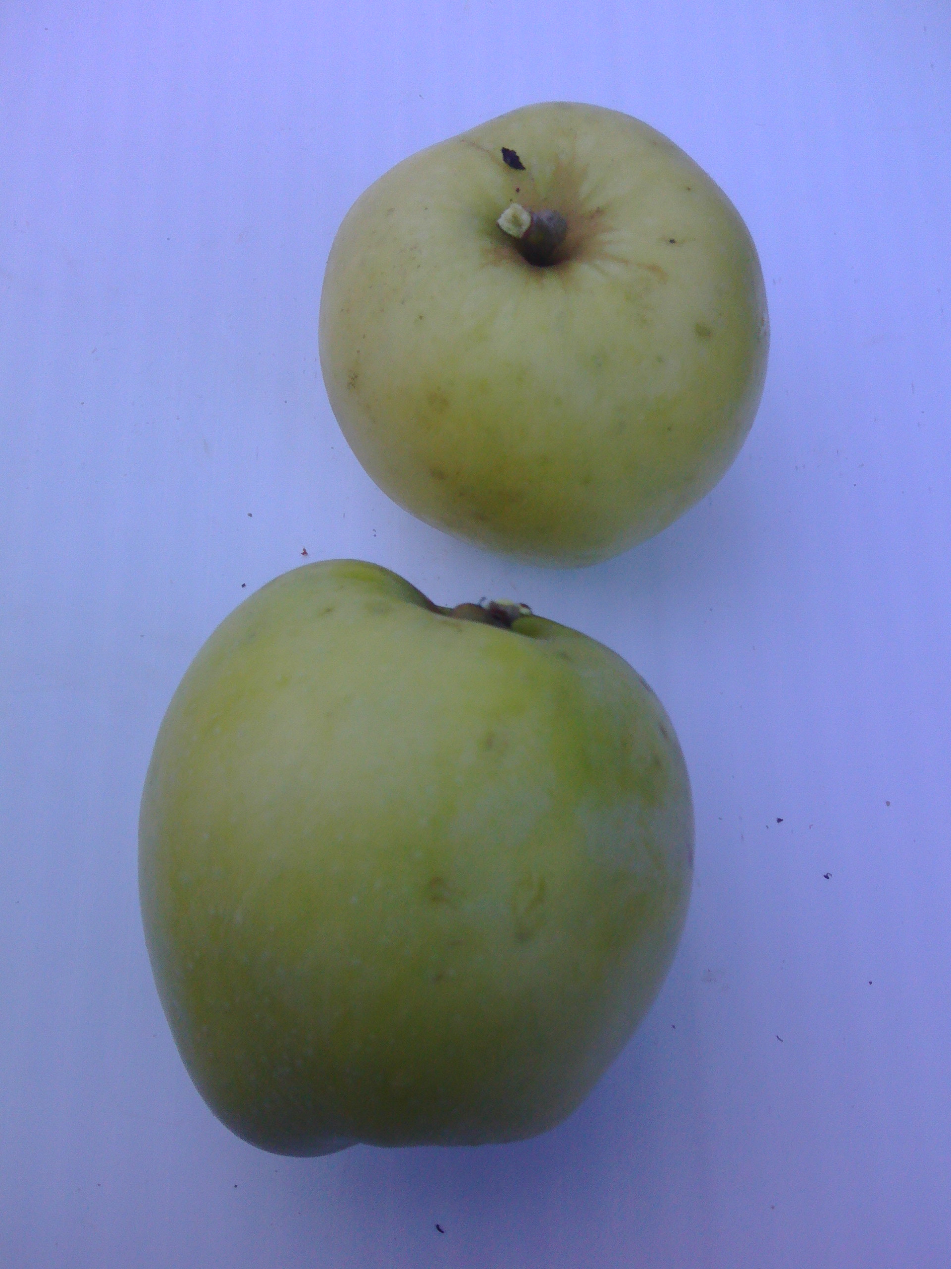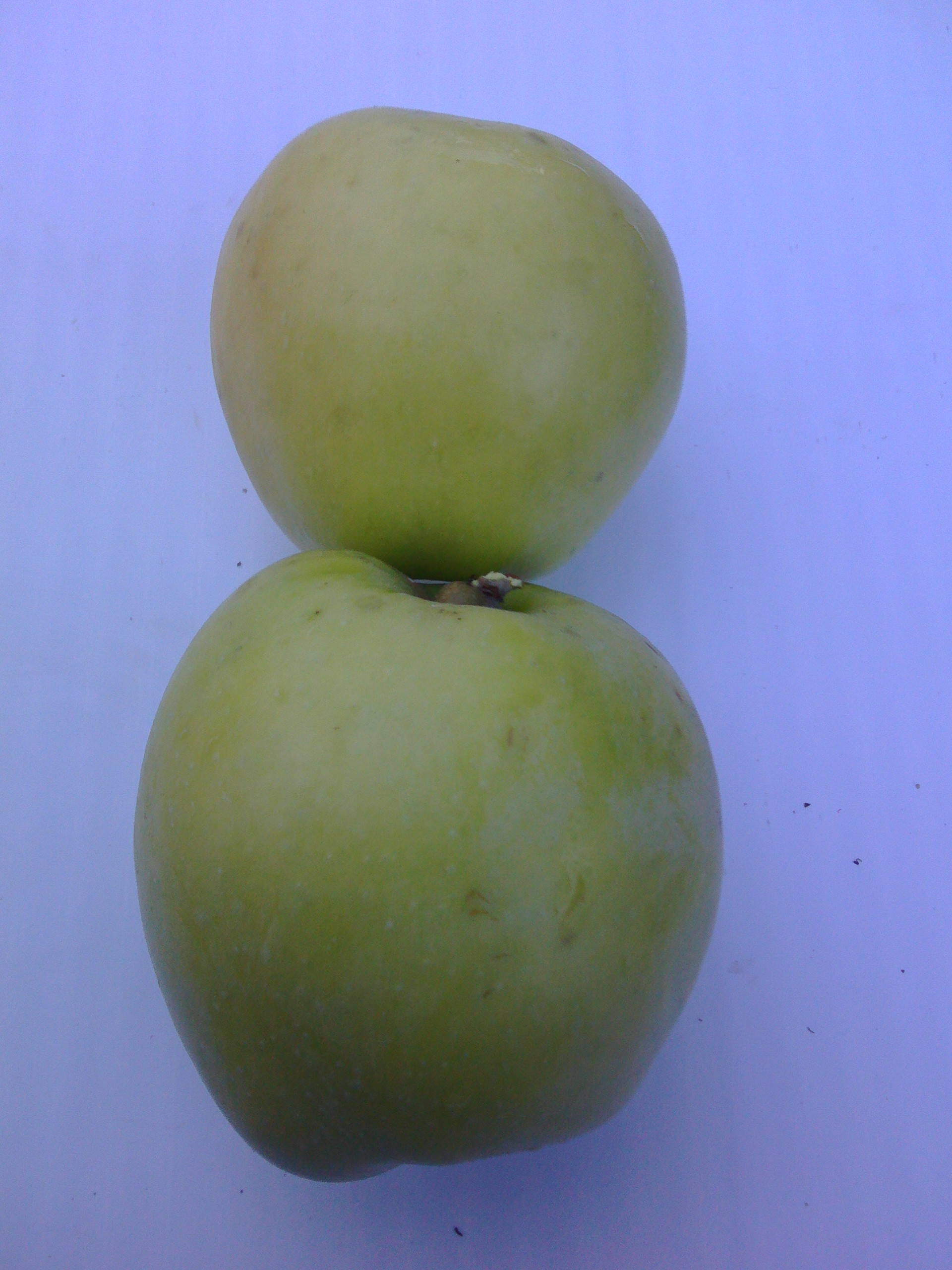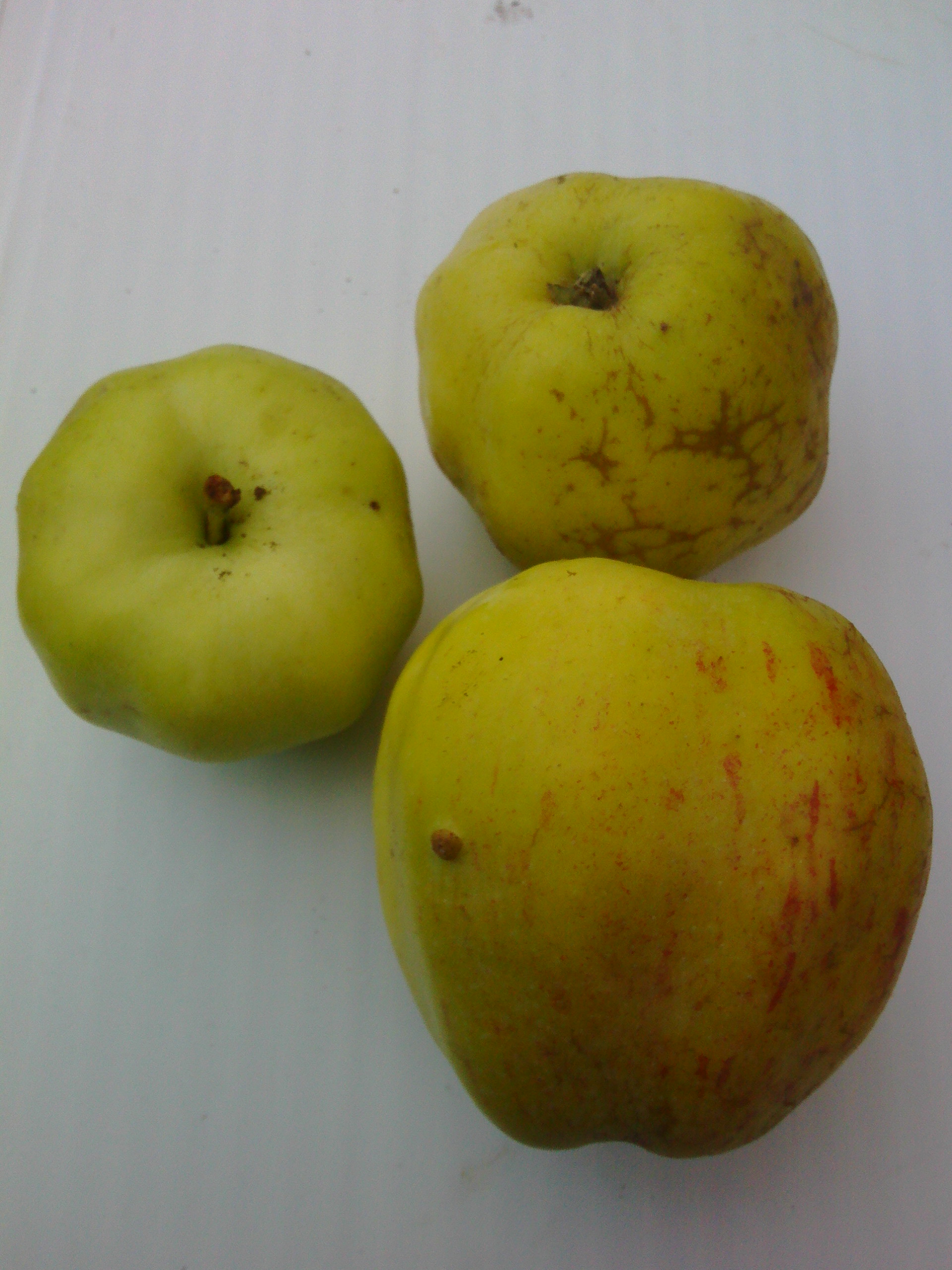 Плоды среднего размера и выше (135 – 160 г), плоско-округлые, зеленые. Мякоть зеленоватая, средней плотности, нежная, сочная, гармоничного кисло-сладкого вкуса с тонким ароматом. В моих условиях созревают в начале августа, одновременно с сортом Елена.