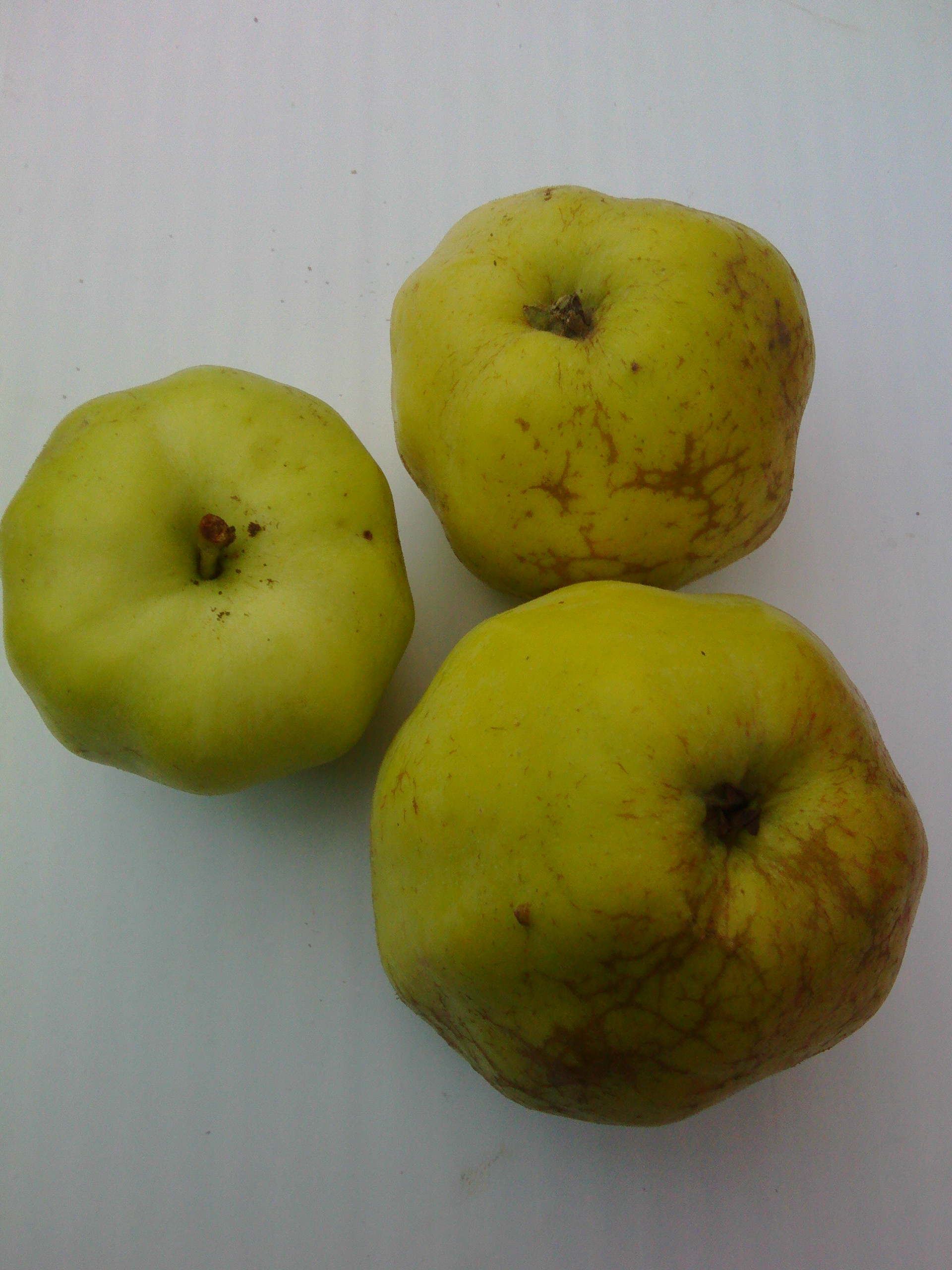Плоды средней величины. Округлые, иногда с заметными ребрами. Основная окраска в период зрелости желто-зеленая. Покровная отсутствует. Плодоножка средней величины выходящая из оржавленной воронки.