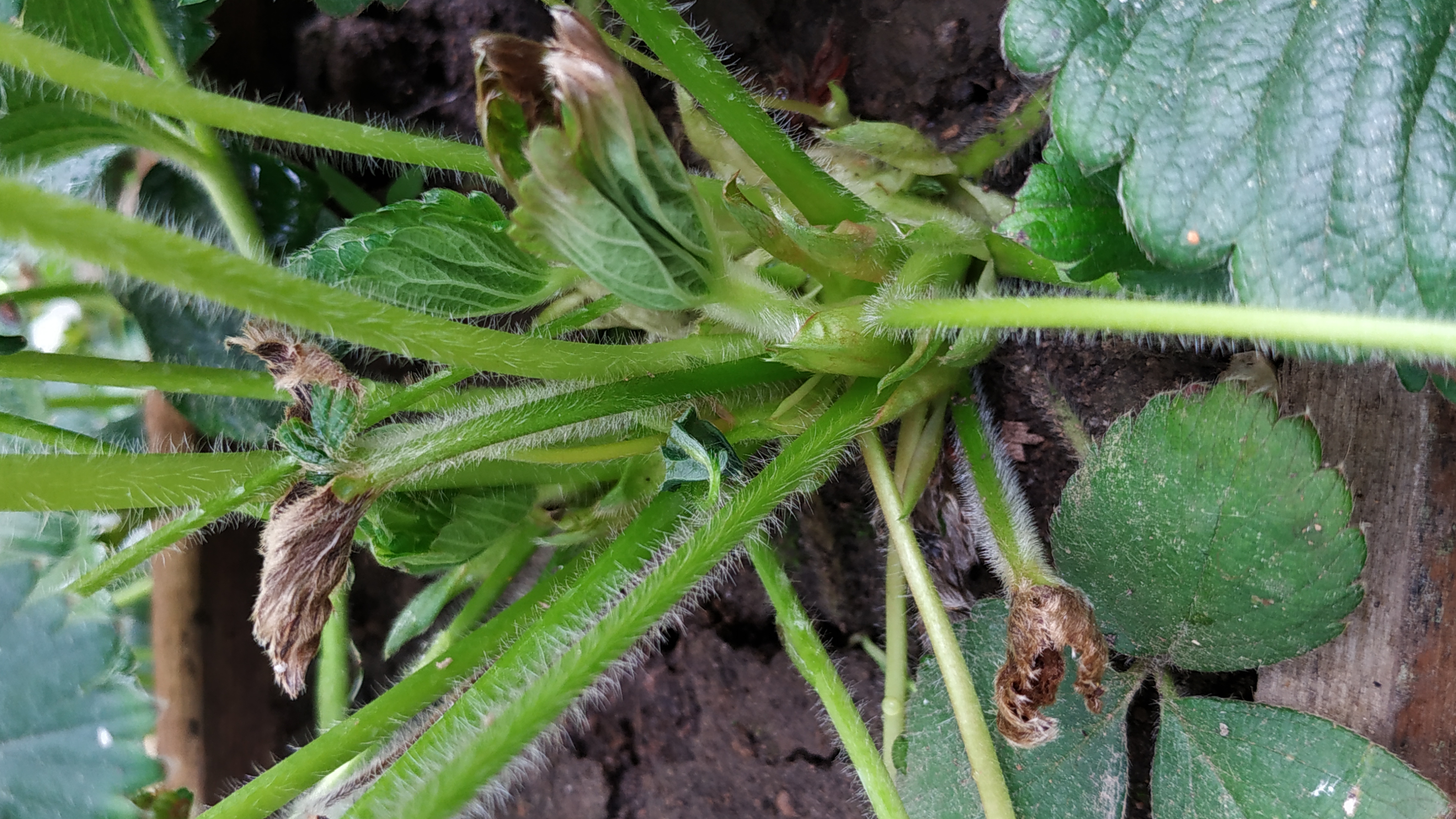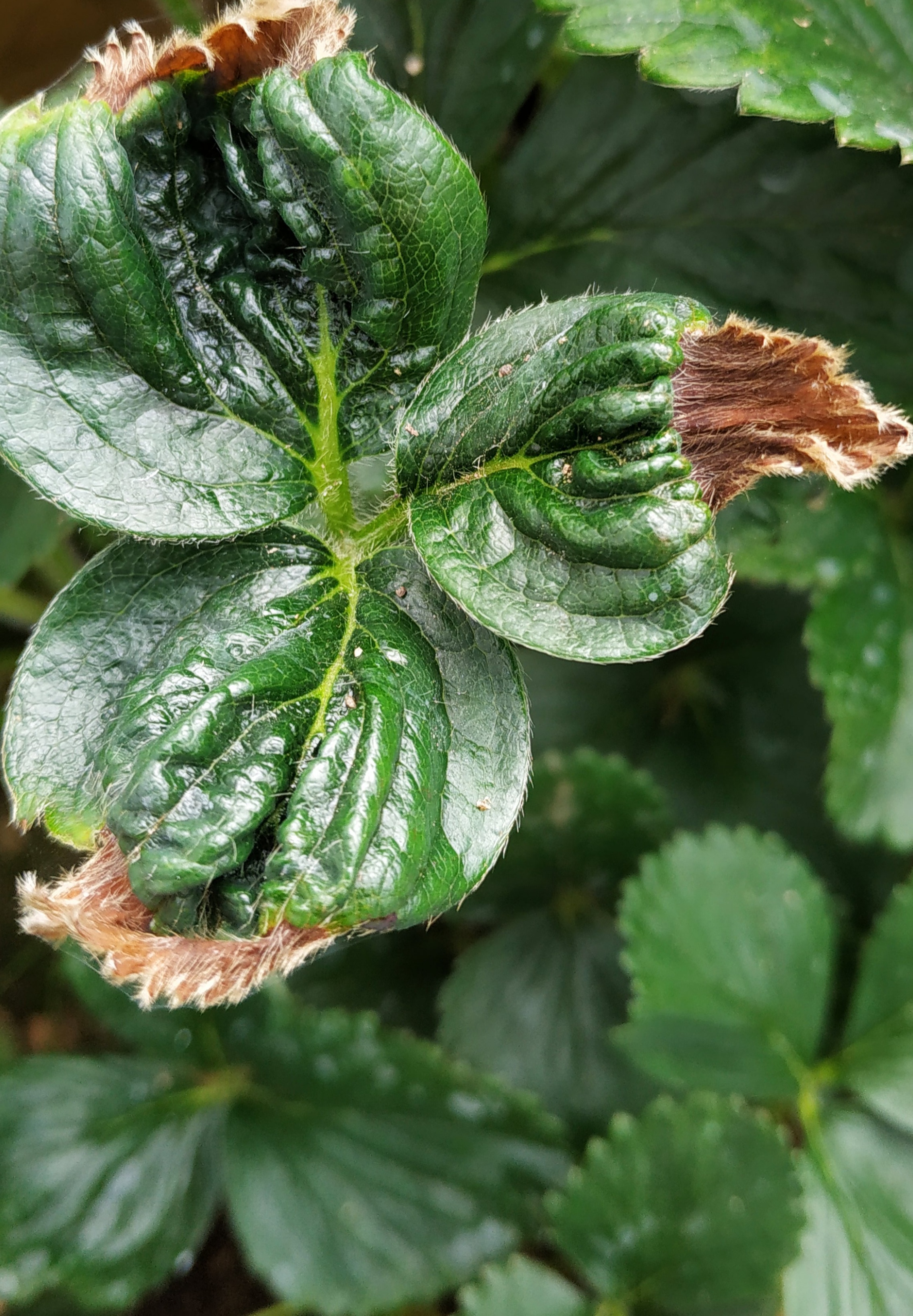 Подскажите, что с земляникой. Отдельные молодые листочки и цветы поражаются на стадии развёртывания.