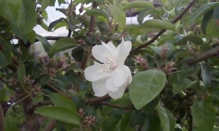 Многие яблони все цветут, на фото единичный цветок Заветного, на др. сортах есть десятки. Может теплая осень ждет в виде доплаты за ужасную весну и противный июнь?