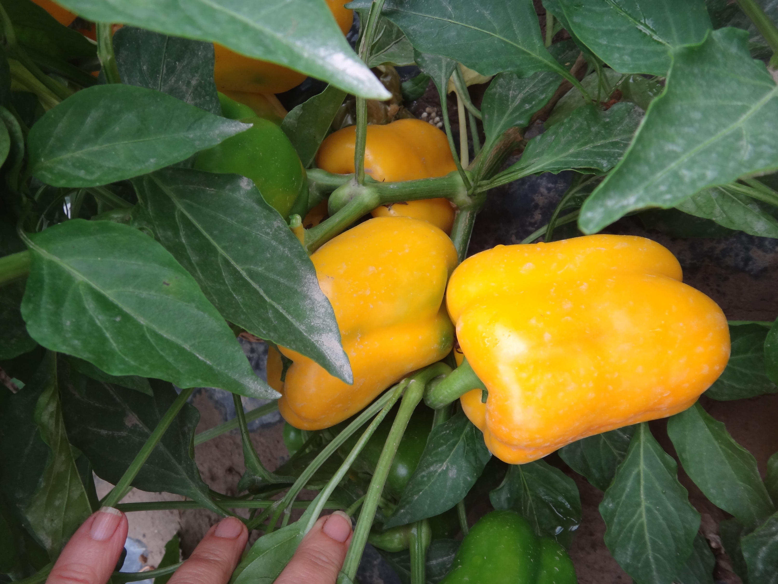 Обе от Гусева, Справа - почему-то заявили, как оранжевый, а в реале - красный. Те, что слева - удобно нафаршировать брынзой. Урожай неплохой, больше Ратунды, но меньше Эдена.