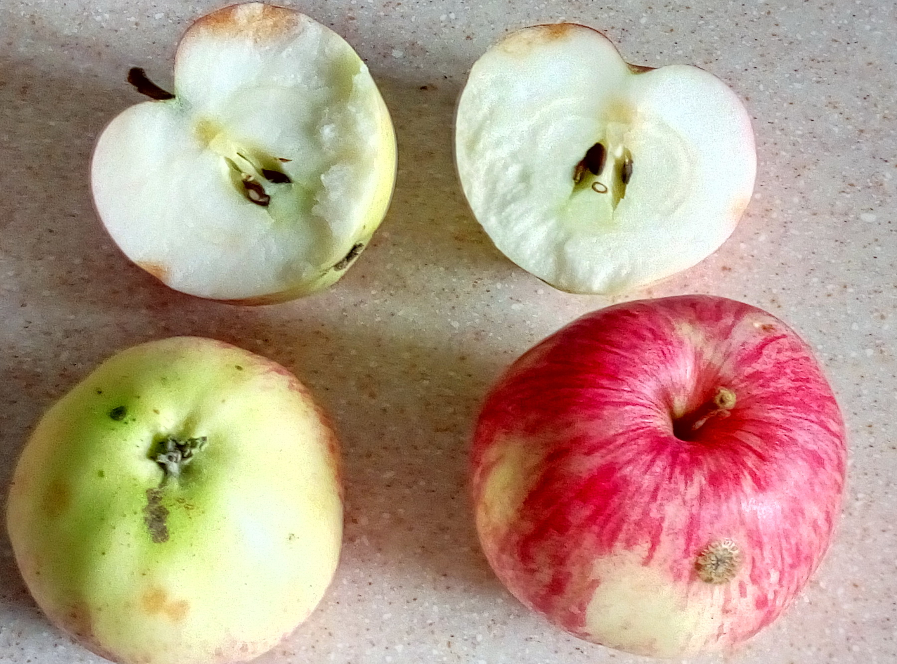 Какой это сорт может быть? Похож на Славу победителям - но не уверен. По вкусу кислее. Яблоко было одно.