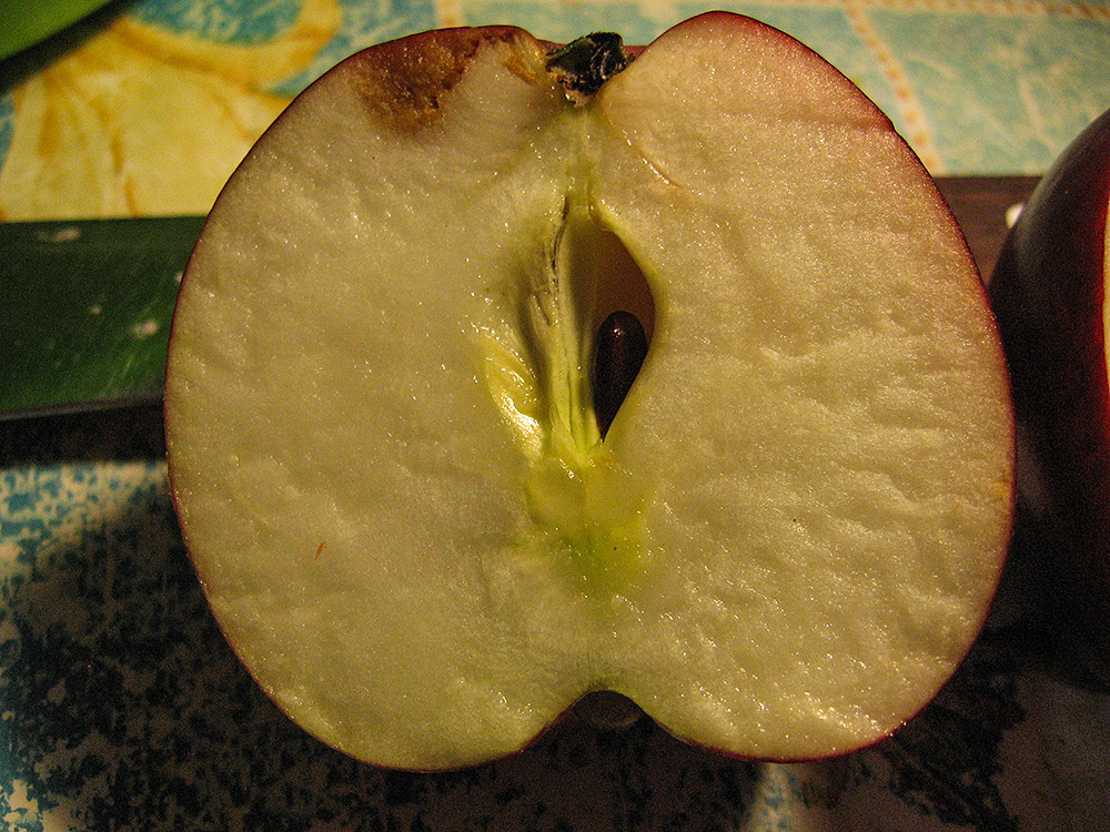Поршой порожение не наблюдается, вкус похож на магазинные яблоки.
