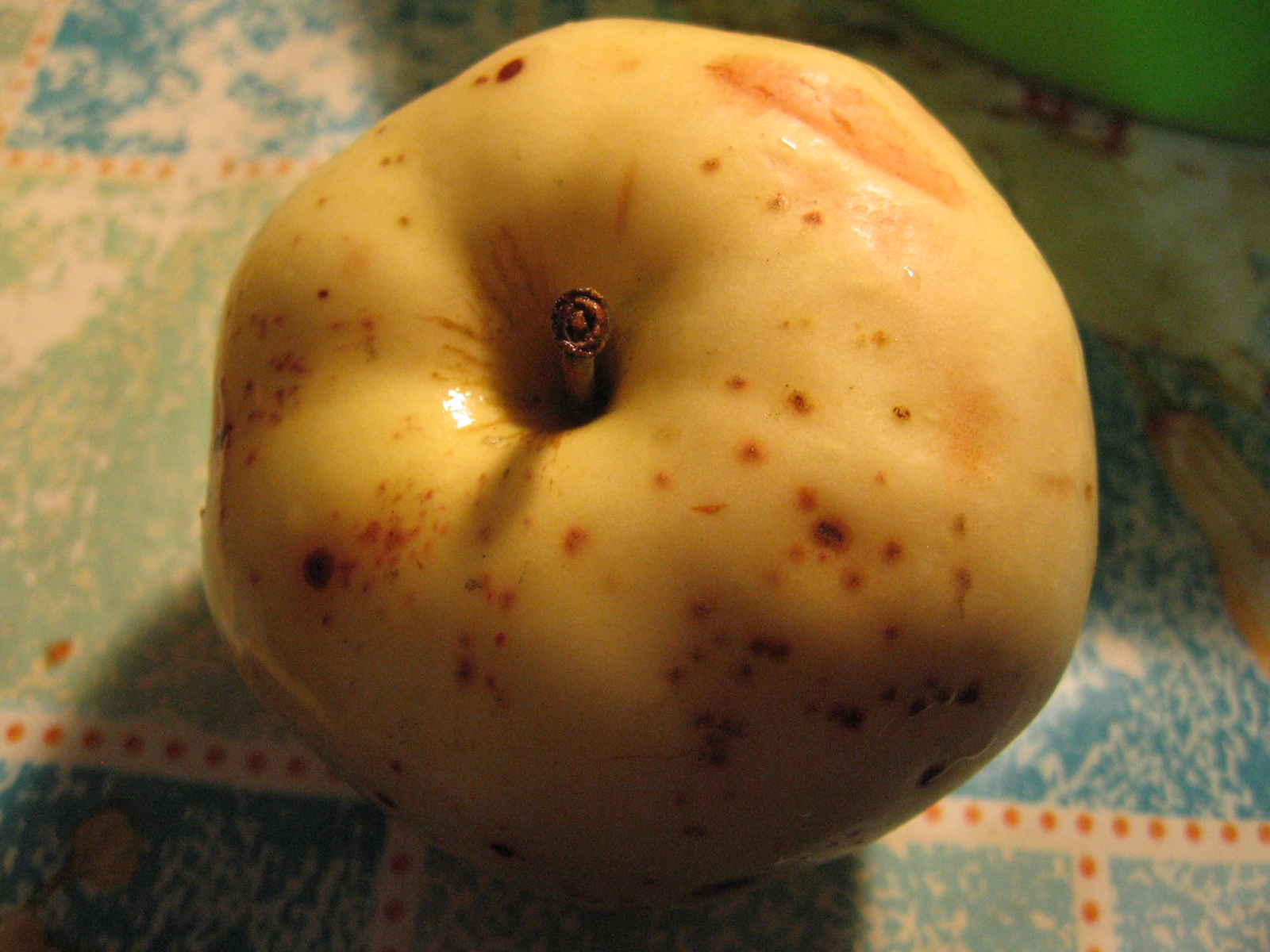 Максим, как-то не похоже на мою СП. Слава как-бы сияет изнутри, как будто лампу простынёй накрыли. И по этому сиянию - румянец. Нет такого непрозрачного желто-зеленого тона, как на фото. Может, правда, с цветопередачей на фото что-нибудь не то. Но и блюдечко/воронка на мои не похожи .... Сфотографировать не могу - отец всё съел, дай Бог ему здоровья. Вкусные яблоки