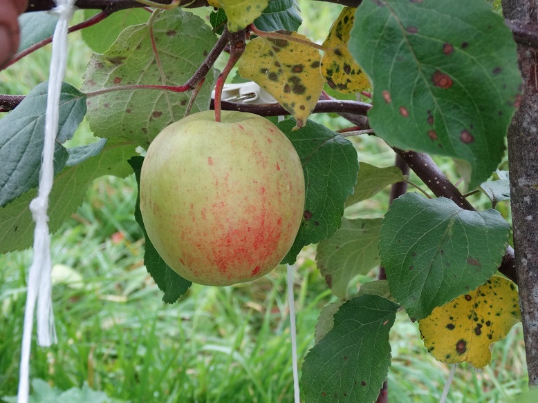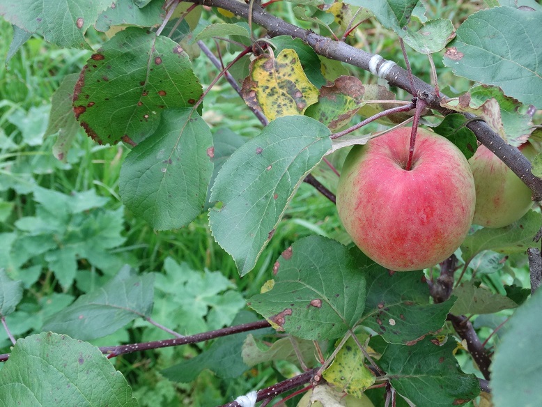 Яблоки сочные, в меру сладкие, нет ни грамма кислоты. Обычно яблоки крупные, в этом году средние вот такие листья .