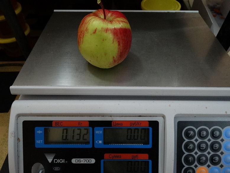 Третий сорт. Летний. Кожица гладкая. Мякоть сочная. Вкус чисто сладкий. Готовы к употреблению в 1-й половине августа. Однако, к началу сентября становятся еще вкуснее. Хранятся плохо. После 1 недели в холодильнике вкус стал горчить. Яблоне более 50 лет.