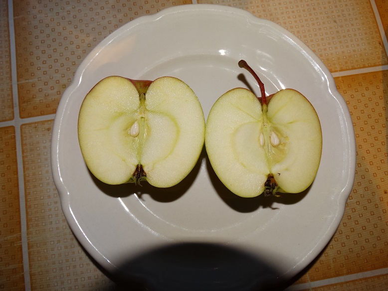 Lii, мне Ваши фотки напомнили мою Легенду в молодости: Сорт - природный полукарлик, нуждается лишь в минимальной обрезке. Хотелось бы на Вашу яблоньку целиком взглянуть, тогда было бы понятней. Видно, что семена еще не вызрели, потому и вкус кисловатый. Характерная красноватая плодоножка и форма чашечки. Немного смущает цвет мякоти, у Легенды он слегка зеленоватый. А так в целом похожи.