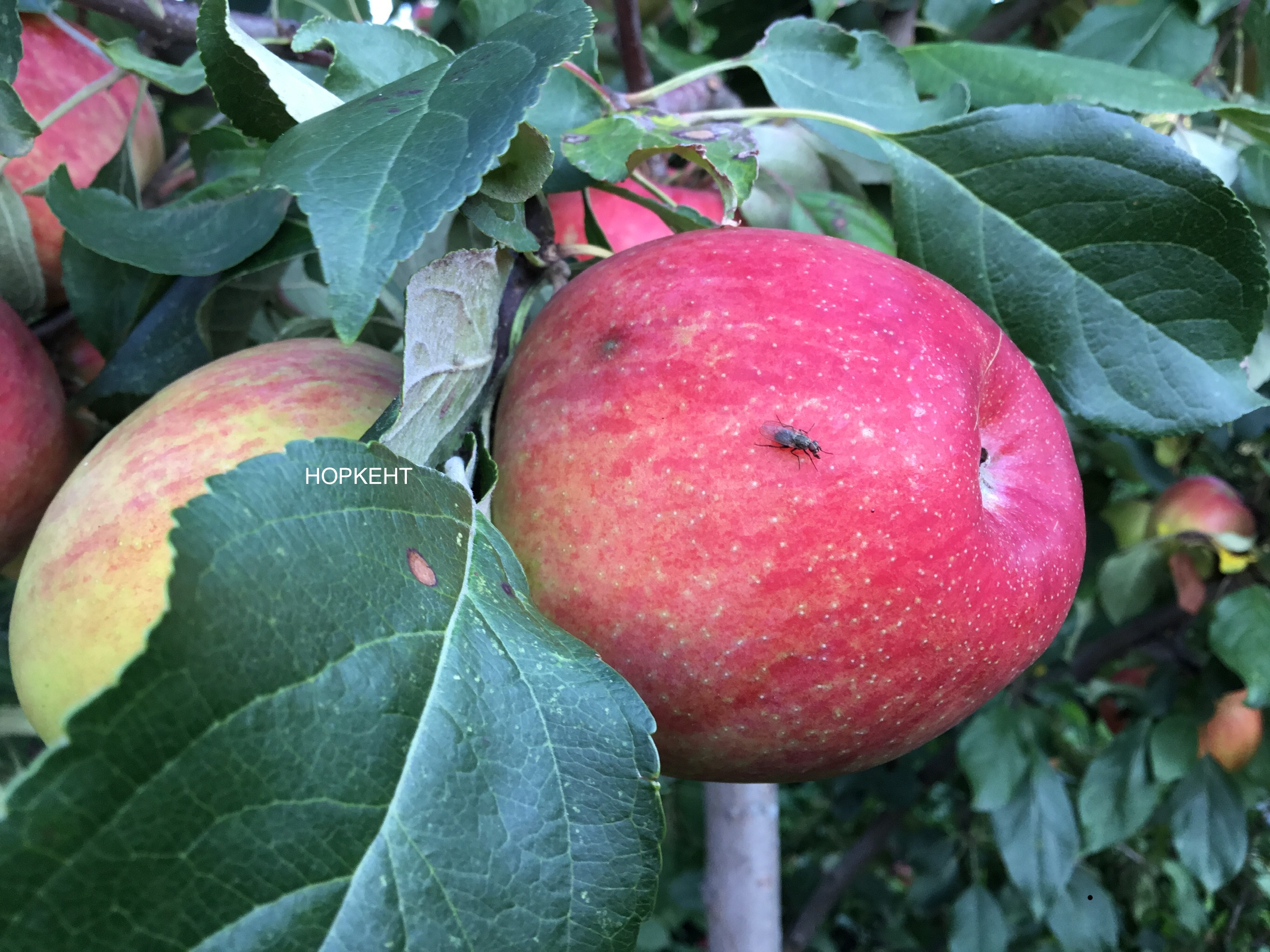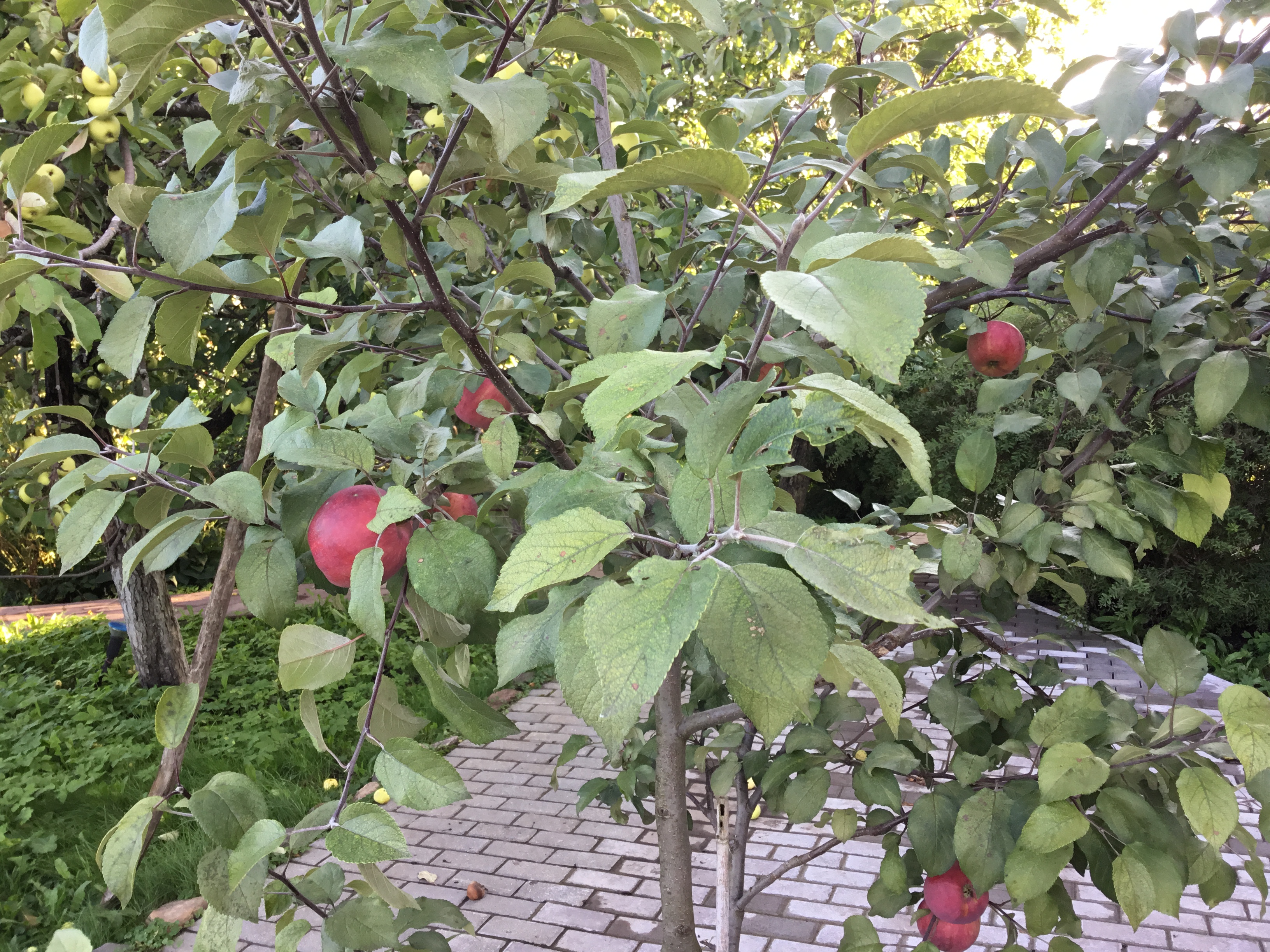 Потихоньку созревают и набирают окрас зимние сорта. Харалсон окрасился уже очень хорошо. Яблоки нарядные, как шарики на новогодней ёлке. Сохранились почти все завязи.