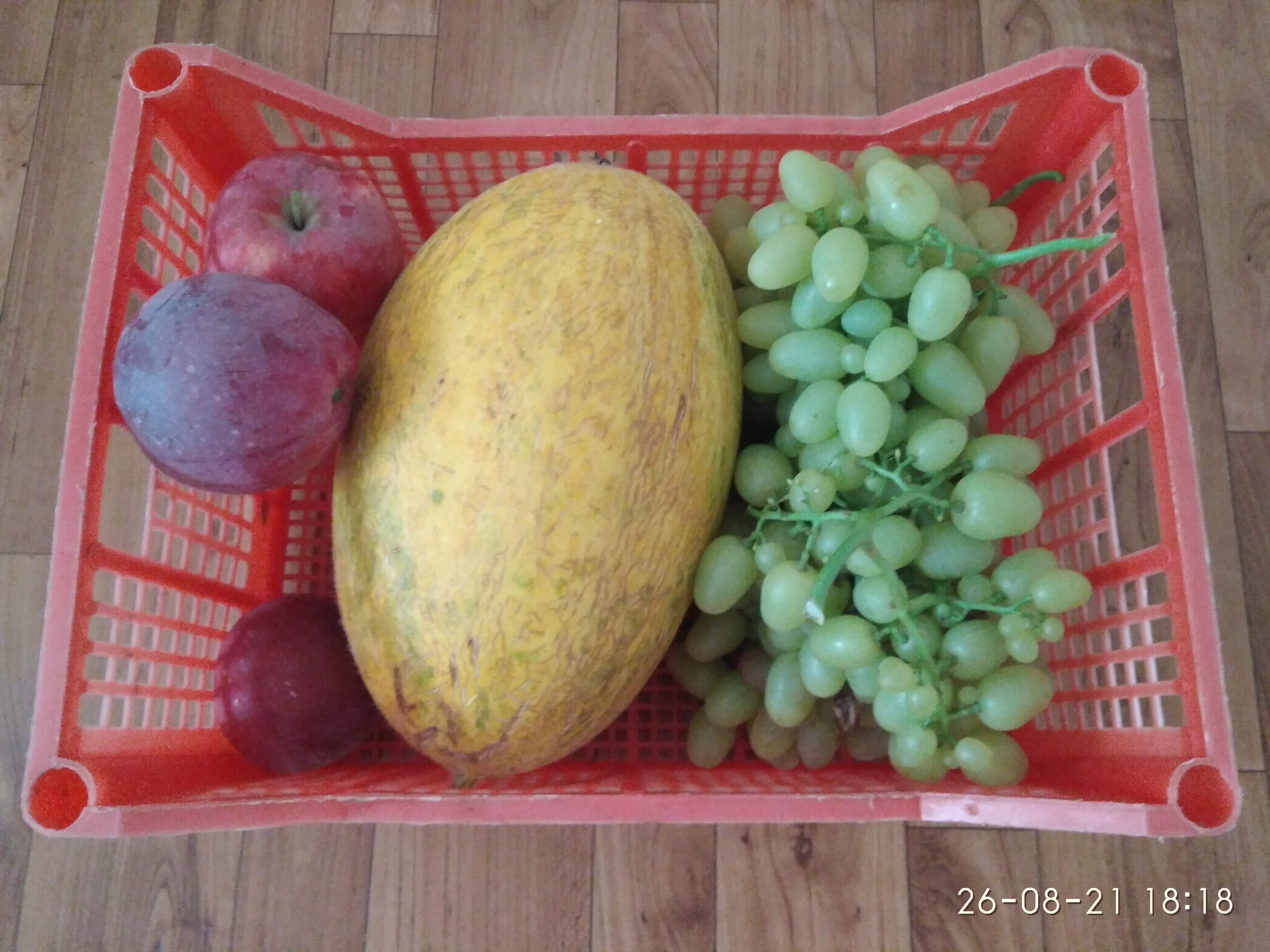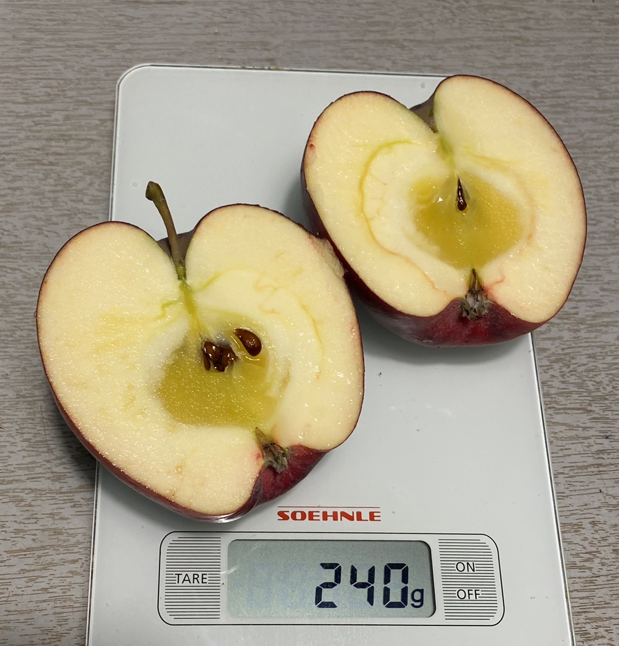 Мякоть плотная, не скалывающаяся, сочная, кожица плотная, но не чувствуется во время еды. Без терпкости. Вкус отличный, насыщенный, очень сладкий, медово-ананасный. 4-6-4,7. Вкус напомнил Снэпдрагон, но мякоть не «каменная» как у него