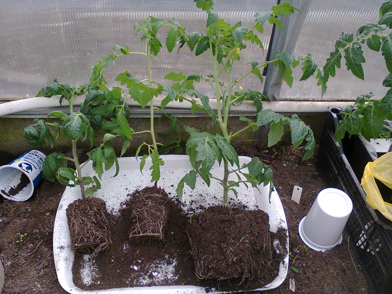 Что бы я сейчас сделала: посмотрела корневую, срочно пересадила в эти же емкости, но поглубже. Грунт должен быть не сырым, а чуть влажным, поливать только после пересадки и не под самый стебель, а аккуратно по окружности, по краям емкости. Через три дня после пересадки подкормите немного кальцевой, а еще через неделю Фертикой для рассады.