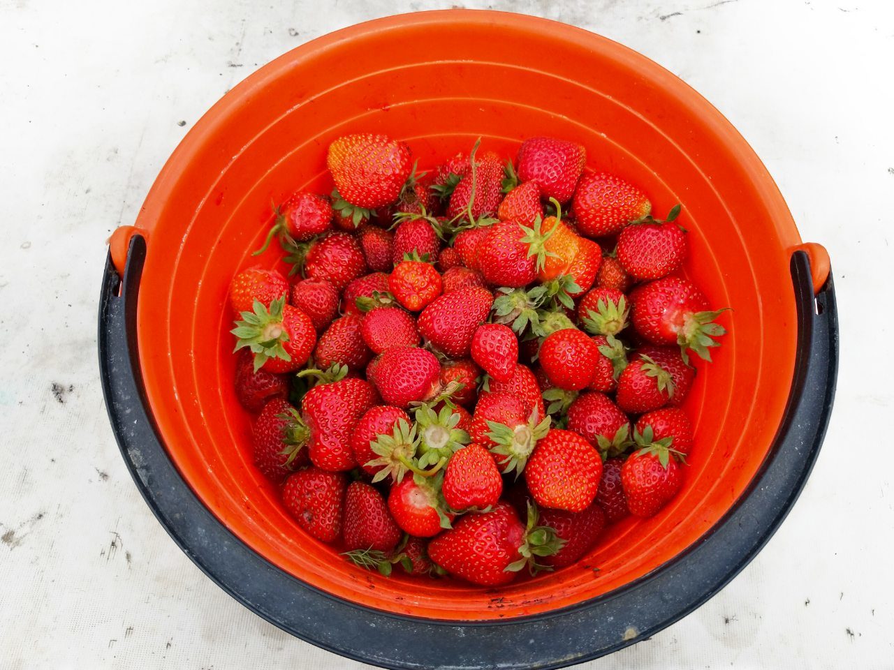 Сегодня обработала клещегоном ( Фитоверм 1%) Баунти. Сорт средне поздний, тоже выбился из графика- цветёт раньше чем обычно . Кусты старые четырёхлетки,надо было удалять в прошлом году... Цветение почти закончилось, обработала от трипса поздновато, кусты огромные , много цветоносов ( часть внутри куста)-5 литров на 2 грядки по 9 м, замучилась. Для себя сделала вывод-если уж придётся обрабатывать клубнику от трипса -оставлять землянику первого и второго года плодоношения ( особенно густооблиственные кусты) обрабатывать очень трудоемко и большой расход препарата ( оно того стоит?) . Появились первые красные ягоды - ( все смешалось в доме ....) на первогодках Кимберли ,Азии,Полки.