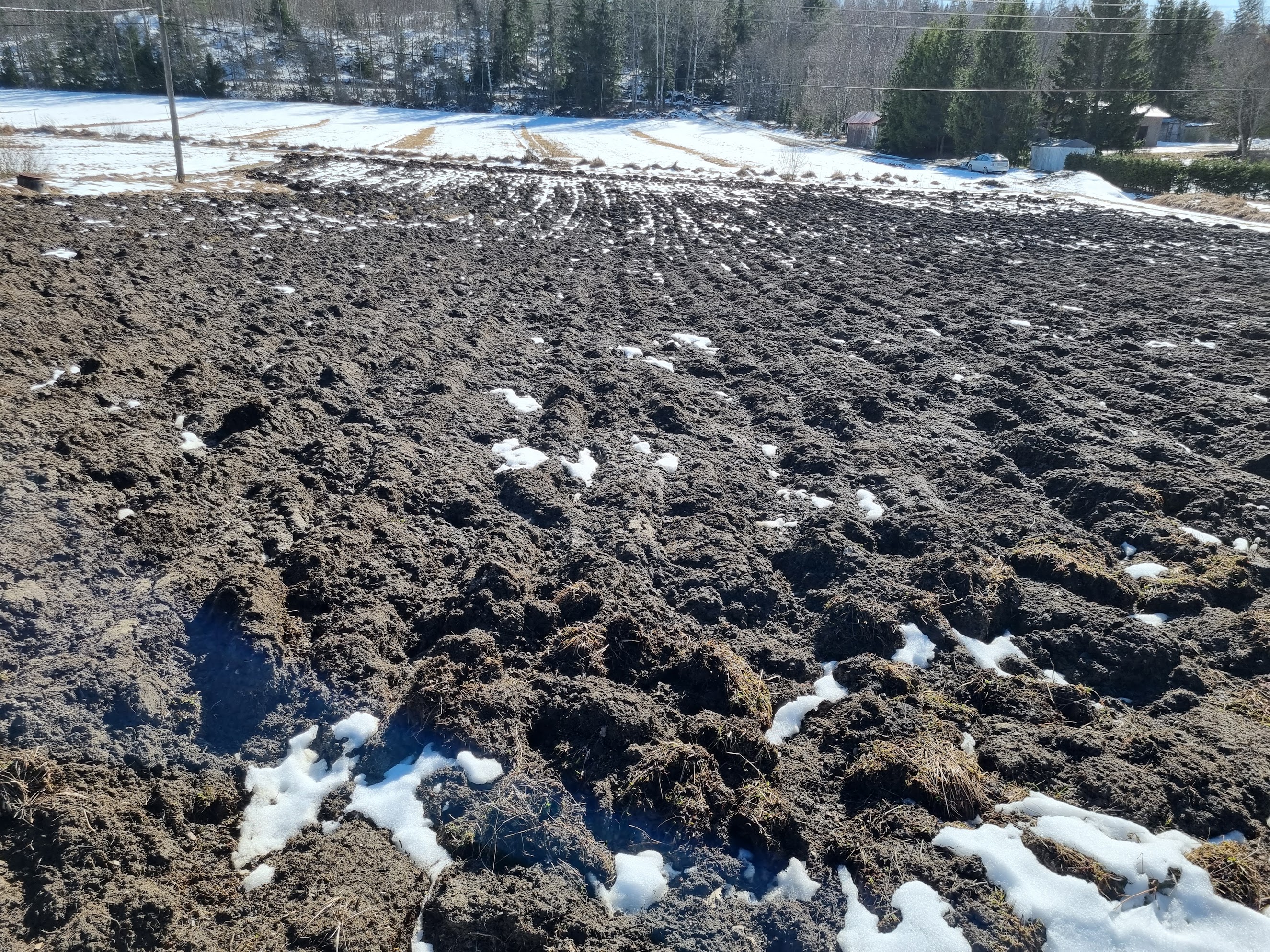 Прошлой осенью вспахали часть участка на глубину где-то пол-метра. За зиму корневища многолетних сорняков погибли. Недавно поле пробороновали, земля стала как пух. Осенью буду на этом месте высаживать уже яблони на пмж.