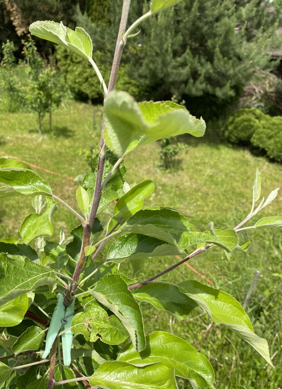void писал(а): ↑05.06.2023, 09:37 У меня такой способ обрезки - не обрезать центральный проводник, убирать конкурентов лидера для того чтобы он максимально быстро достиг верхней проволоки шпалеры. Все ветки толще половины диаметра штамба обрезаю на сучок. Боковые ветки не укорачевал, они плоскость шпалеры пока не заполнили. Ну и пригибаю ветки к проволоке шпалеры чтобы придать им горизонтальное положение.