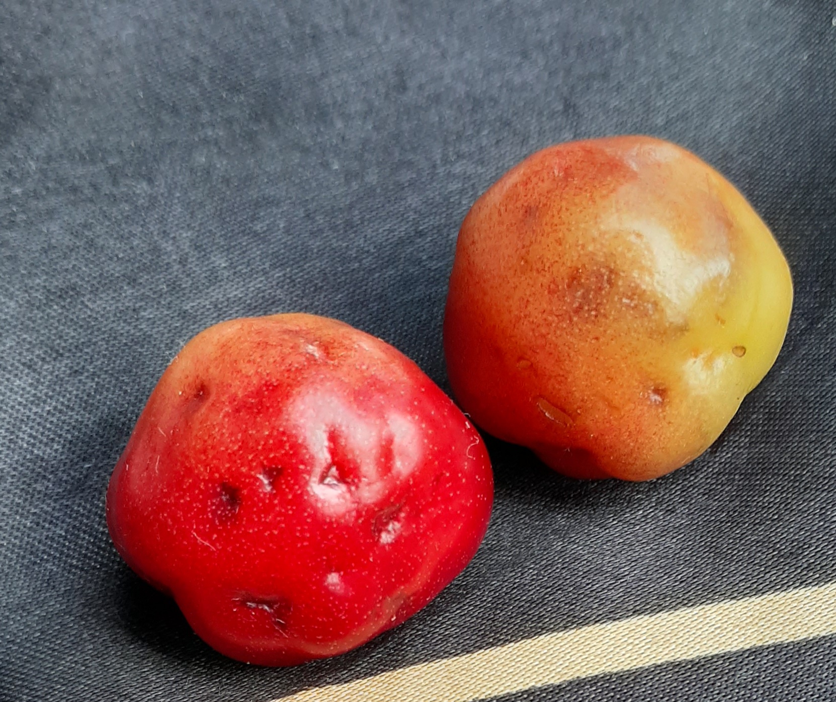 Попробовал сигналки Путинки и Октавы. Цветы попали под заморозки, поэтому плодов было мало. Оба сорта вкусные, Путинка реально очень крупная. Единственно, у нее присутствует межжилковый хлороз и попадаются листья с желтыми жилками. На других деревьях такого не наблюдается.
