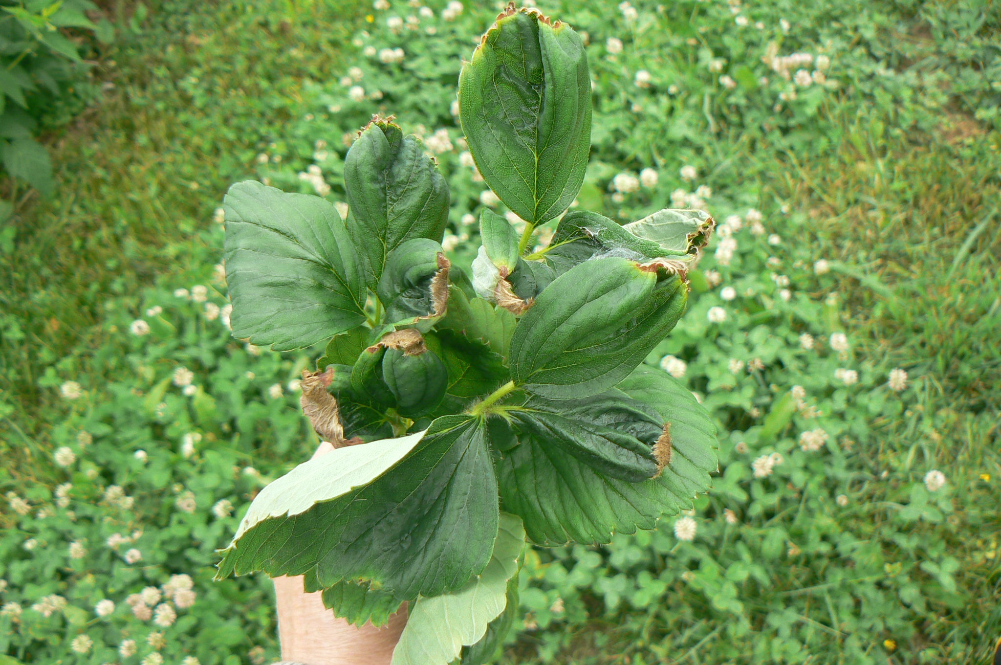 Хотя, присутствует паутинный клещ. Вон...справа...выдал себя паутинкой! Prinam , возможно и у Вашей - из-за нехватки бора. Потеря плотности ягоды. У Вас - не на солнцепёке?
