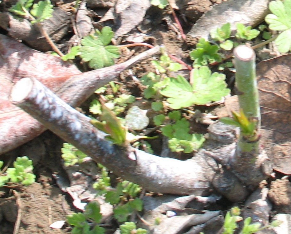 Да, в конце прошлого лета на "рожки" миндаля были сделаны 2 окулировки, те посажены 2 почки одного сорта июльского персика типа Сочный.