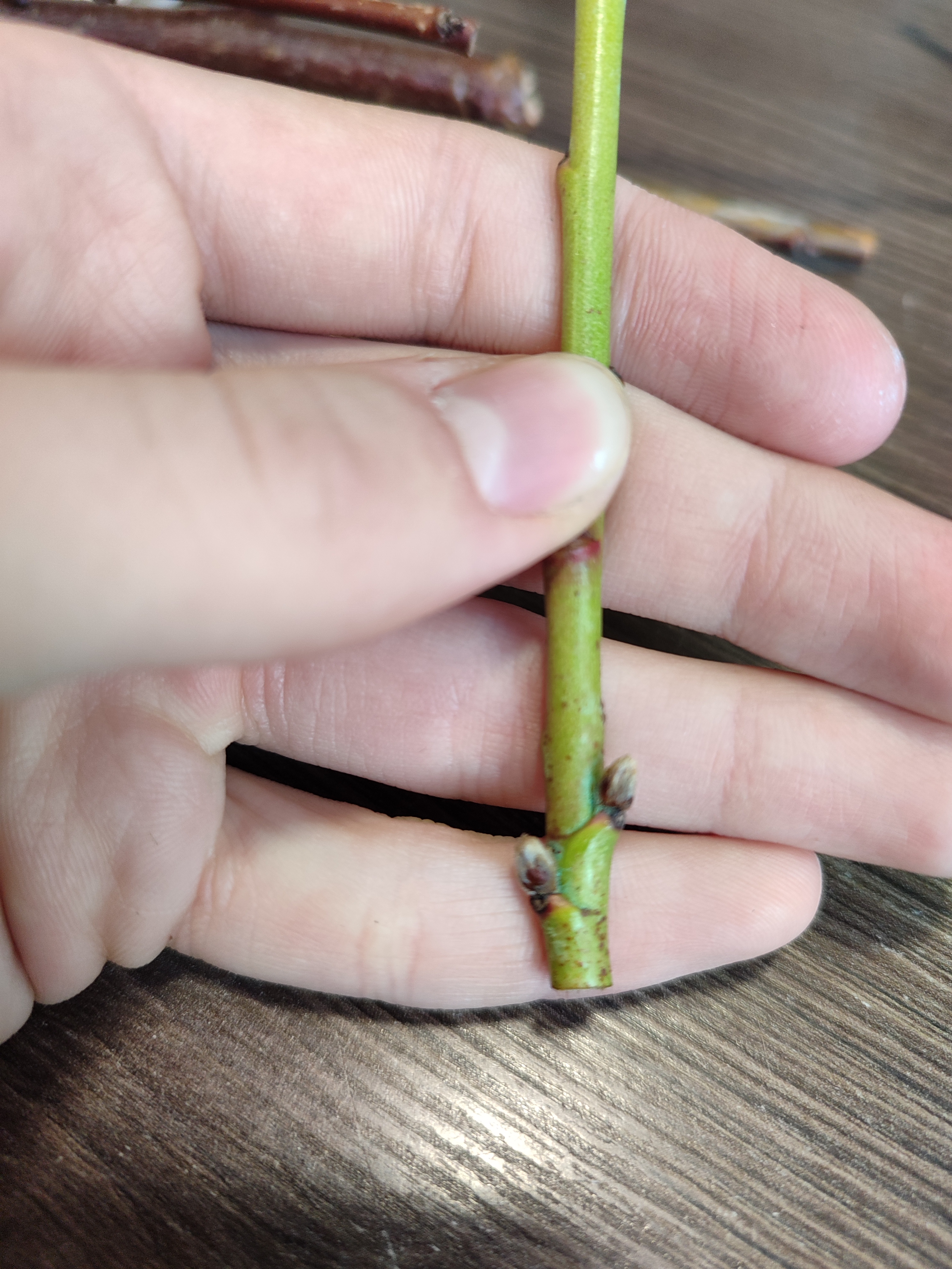 Я много всего изучил по персикам, но до последнего был уверен, что плодовые образования на нем - тройные почки, двойные, и так же одинарные цветочные на самых кончиках побегов. Однако вот, я срезал со своего дерева черенки - и прирост в 40см весь улеплен, судя по всему, одинарными плодовыми почками - и ни одной ростовой. Или все таки такие почки станут ростовыми? Думал такие черенки прививать. Причем такая странная закладка почек и на метровых приростах - в основании часто крупные одиночные пушистые почки, как цветковые.
