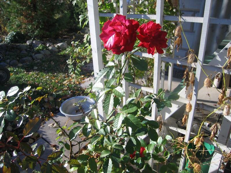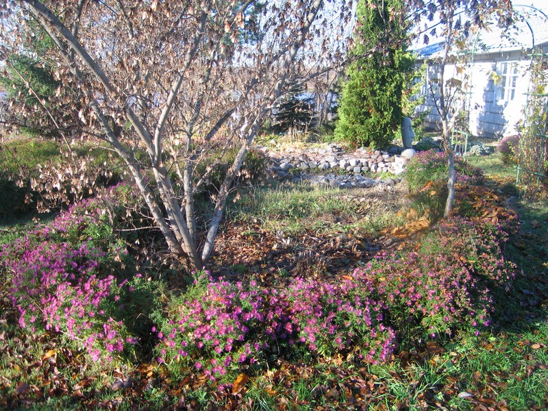 Сегодня, впервые, за всю неделю было тепло (аж +8) и солнышко. До темна провозились на даче. Смотреть, кроме яблонь, уже не на что - всю неделю были минуса. Замерзли даже цветы у роз, стоят такие сухие букеты... рябины покраснели и осыпаются. А всего лишь полторы недели назад, была вот такая красота (покажу хоть с опозданием):