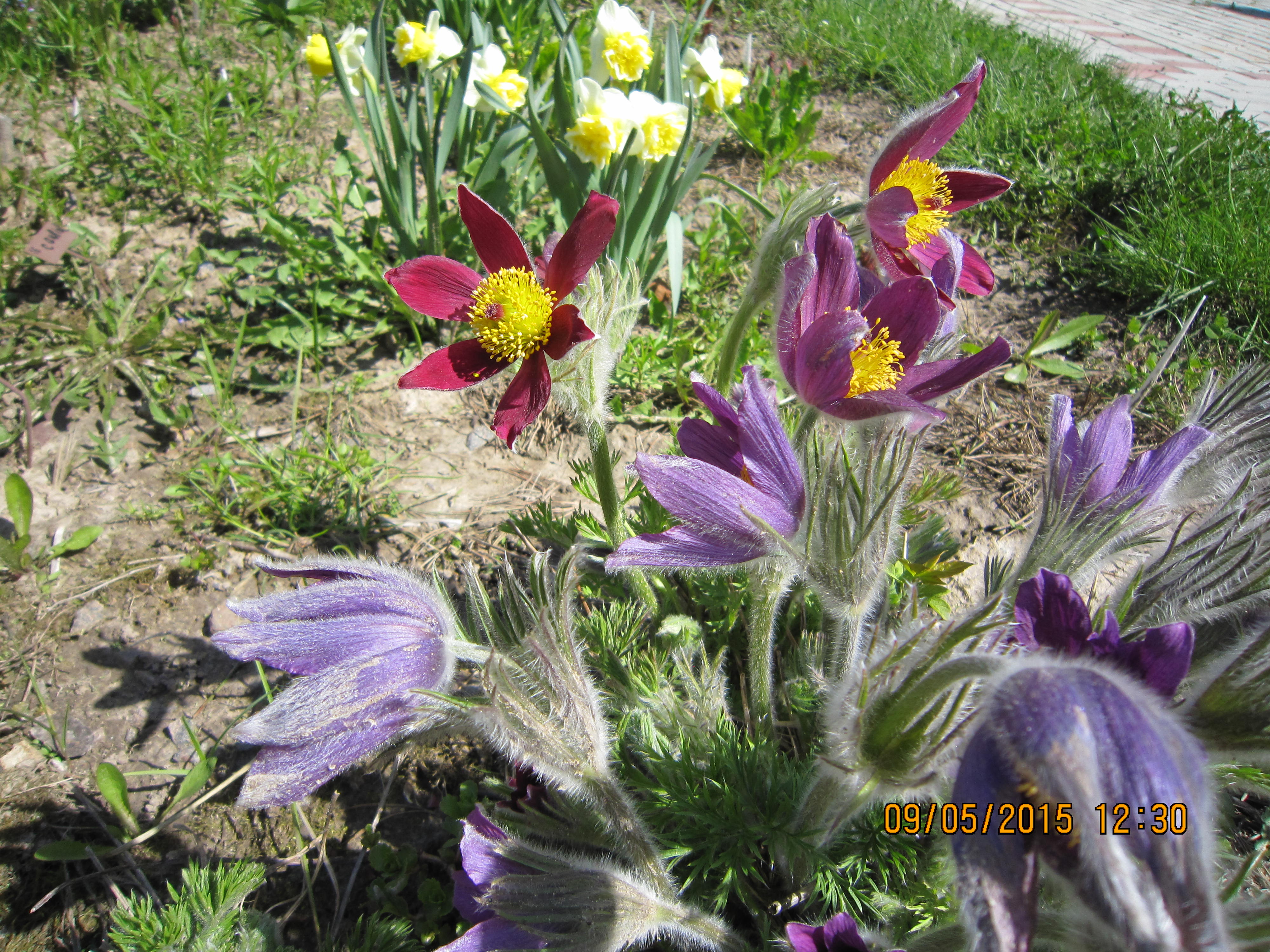 seaserpent, крокусы припозднились - растут под грушей. и снег там сошел поздно. Тюльпаны зимовали под укрытием с розами, расцвли раньше обычного. Вот так они и сошлись по времени цветения).