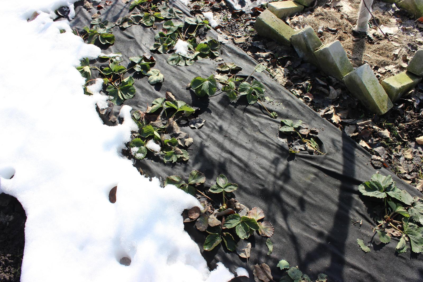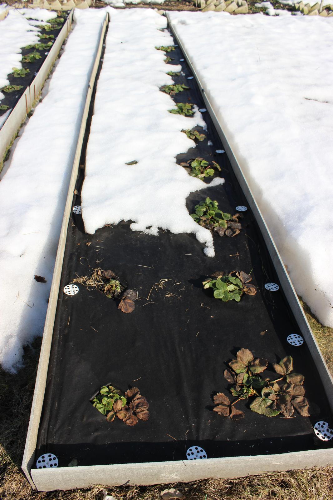 Вчера был на даче. Снег сходит стремительно. Земляничные грядки частично оголились.