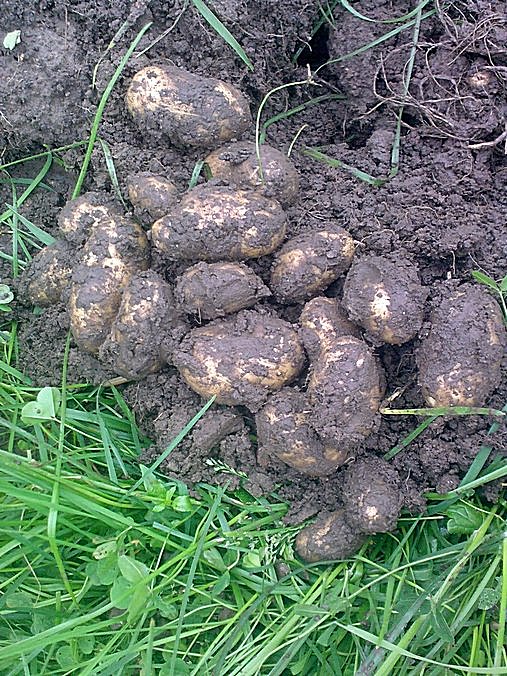 Сегодня подкопала пару кустиков Удачи (далеко не самый урожайный сорт). Еще цветет, т.е. расти и расти. Взвесила. Получилось 2,4 кг.