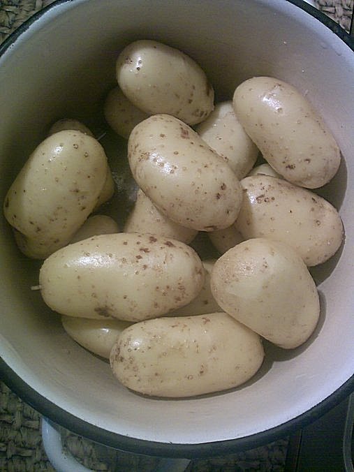 Сажала числа 6-7 мая, точно не помню. И , как я уже писала, Джелли была на момент посадки без ростков, с едва заметными глазками ( времени не хватает всегда на проращивание). Несколько штук не взошло. Посадочные клубни были примерно такого же размера, как на фото, резать не стала.