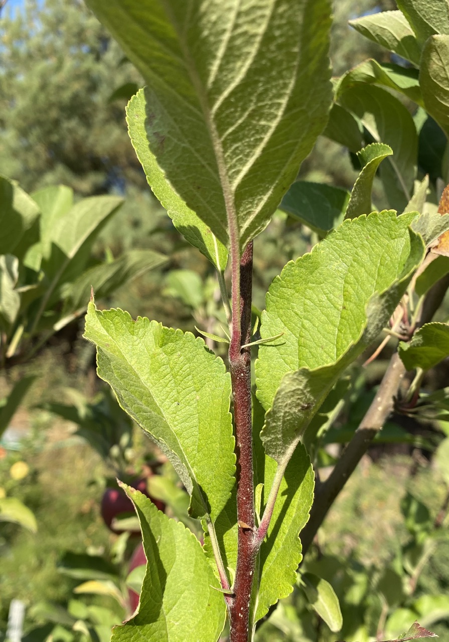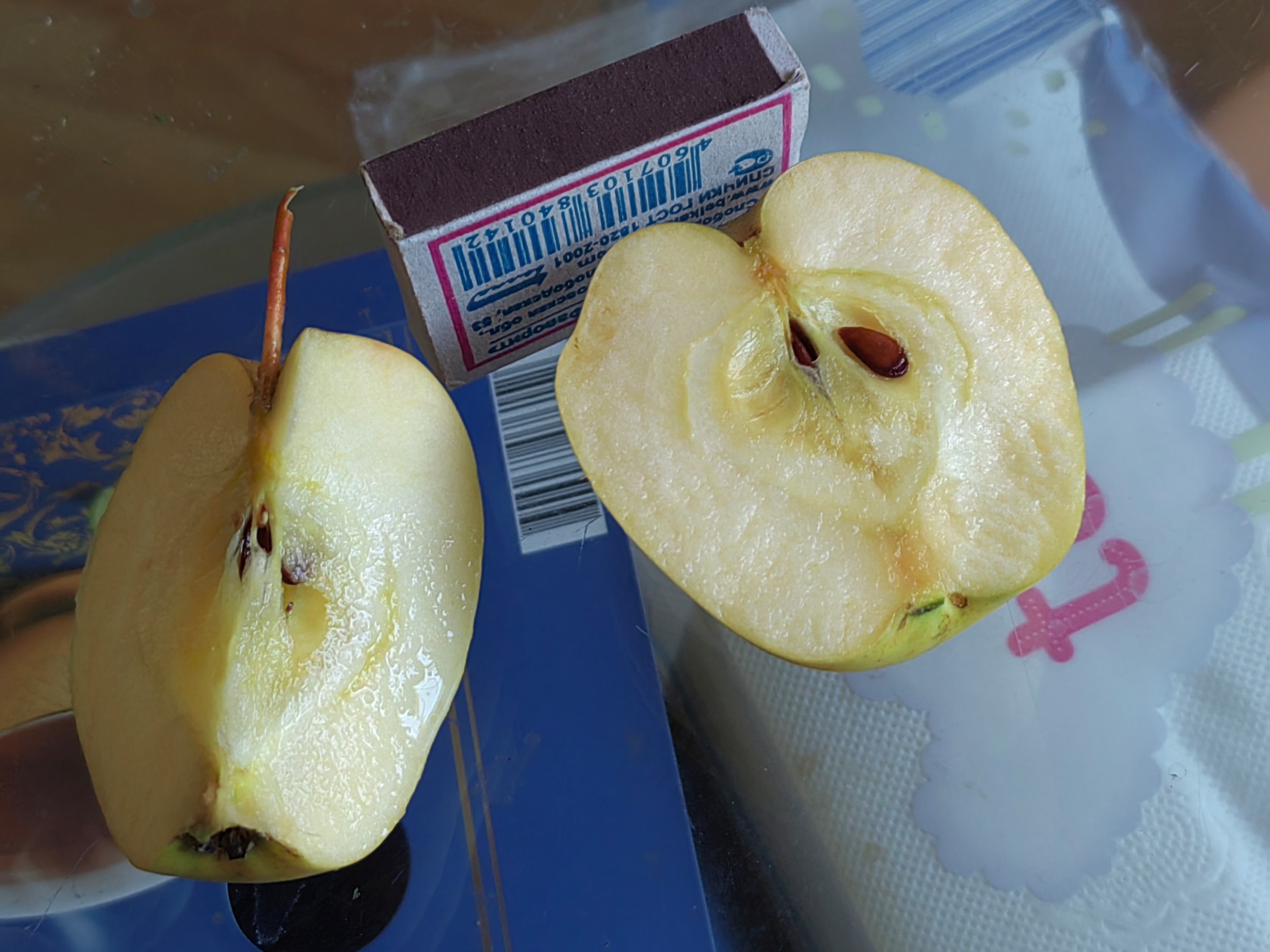 Черенок от Марша, прививка 22 года ,в прошлом году были сигналки, чисто зеленые, снял в ноябре самые последние, вкуса толком не нашел в течение хранения, так и пролежали , даже не помню съели или выкинули.Решил убрать прививку.Но вот сейчас с окрасом, очень вкусные.Убирать передумал.На плодах следы горькой ямчатости.Плоды ровные от 170 до 200гр.Прививка мощная на высоте 2.5м вылезла из яблони как крыло.Мякоть у яблок зеленовато-желтая, у сильно окрашенных желтая.В инете встречал, что если сад обрабатывается гиббереллином при соответствующем агрофоне, то яблоки крупнее, удлиненной формы, лист с ладонь, семечки недоразвитые или отсутствуют.(не в тему-гиббереллином можно вытянуть отстающие саженцы)От вида подвоя зависит цвет коры и размер плода.Изменение всех этих факторов от изменении климатических условий.Это я о том, что сейчас подтверждение сортности очень затруднено.yri писал(а): ↑06.10.2024, 08:01 Есть общие характеристики для триплоидного сорта как сильный рост, обычно прививка опережает в развитии и утолщении ветку на которой привита или подвой. Крупные листья, толстые побеги. Также явным показателем являются неполноценные (неразвитые семечки).