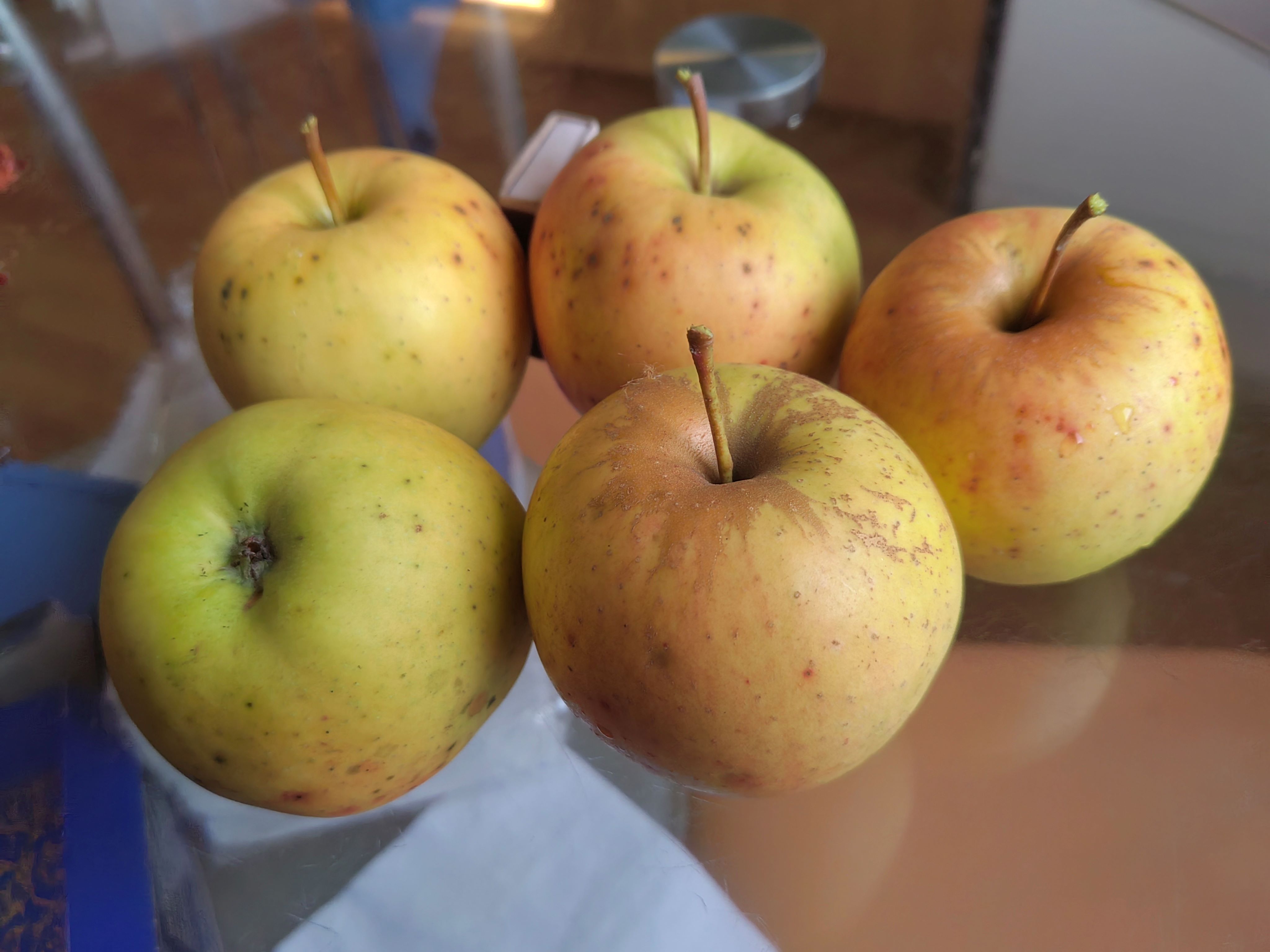 Из конкретных характеристик Мутсу - крупные яблоки без оржавленности, мелкие плоды скорее исключение, подкожные точки зеленоватого цвета а не черного, мякоть желтого цвета, семенные камеры очень маленькие, плодоножка достаточно толстая и среднего размера, осыпаемость отсутствует у этого сорта. Кислинка есть но она не резкая а ароматная особенная.