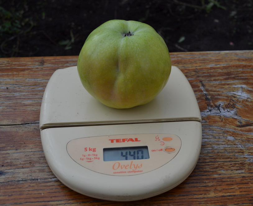Попало в сад по пересортице из одного местного питомника.Хранятся до декабря.В декабре начинает мякоть постепенно буреть,становится более вкусной (на мой вкус).Яблоки при хорошей агротехнике до 300 гр.!Если запустить -то ничего выдающегося.В этом году из-за холодной весны завязалось одно яблоко.