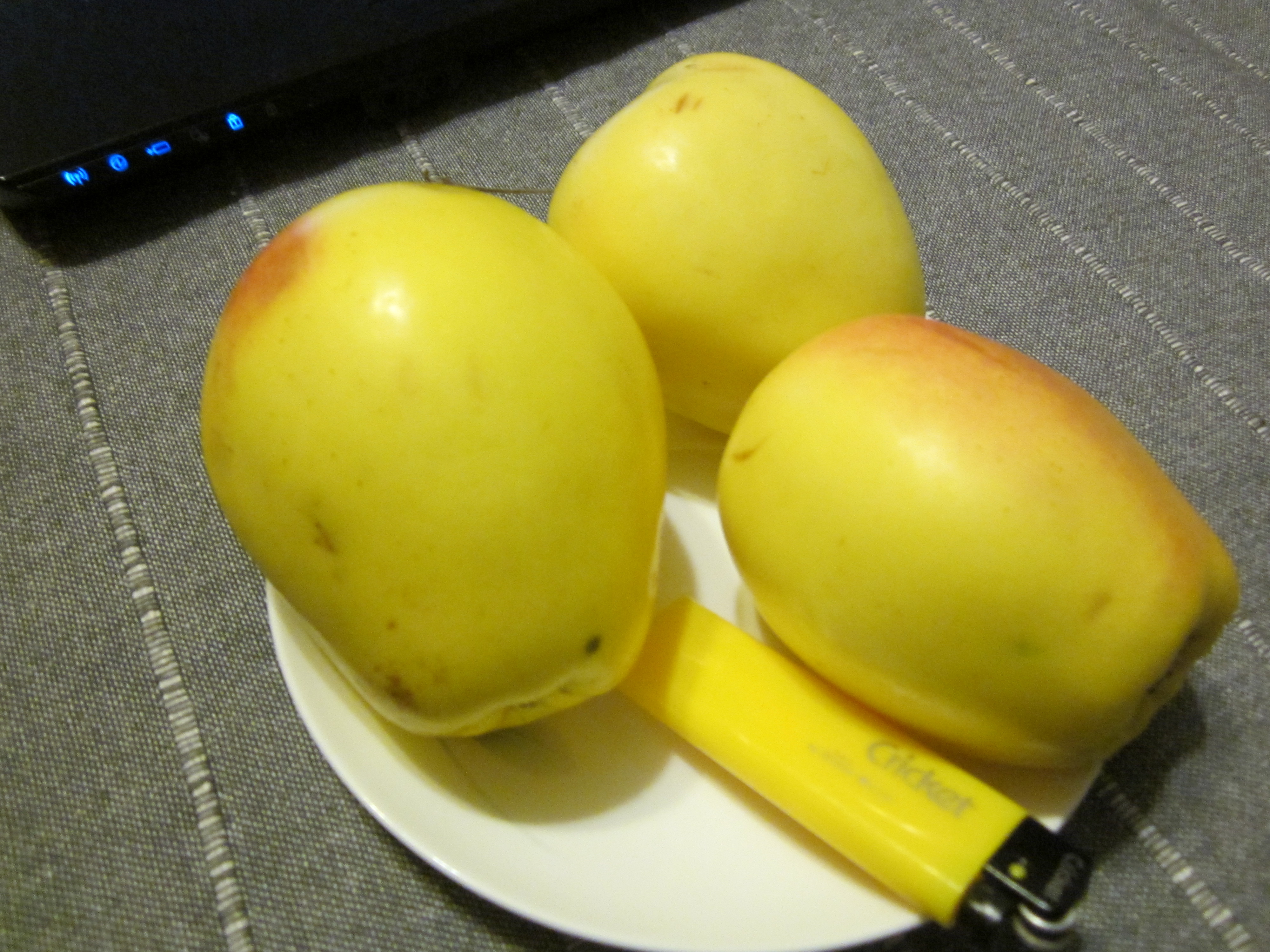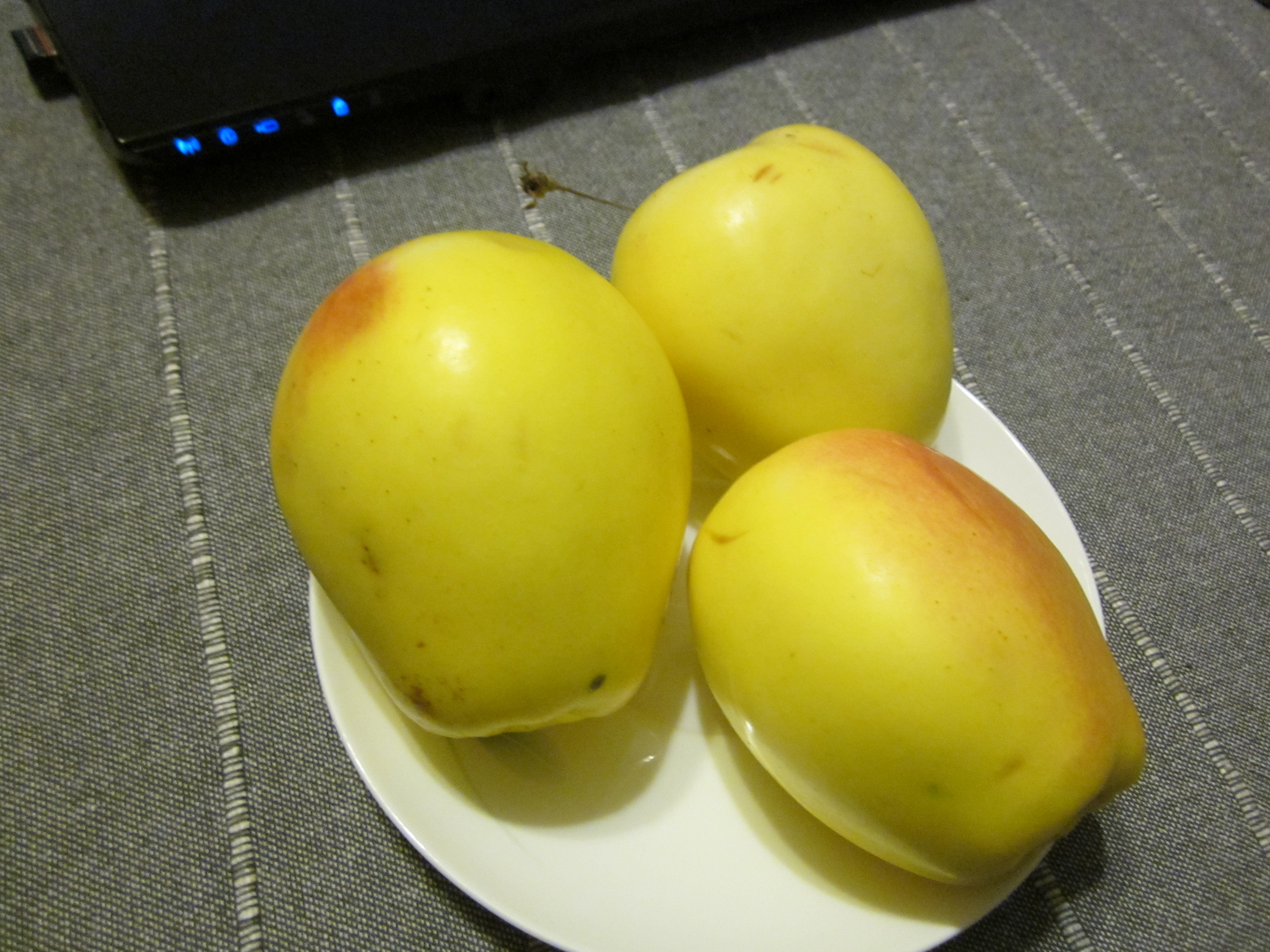 Было несколько плодов в прошлом году. Созрели вместе с антоновкой (может быть поздновато снял)