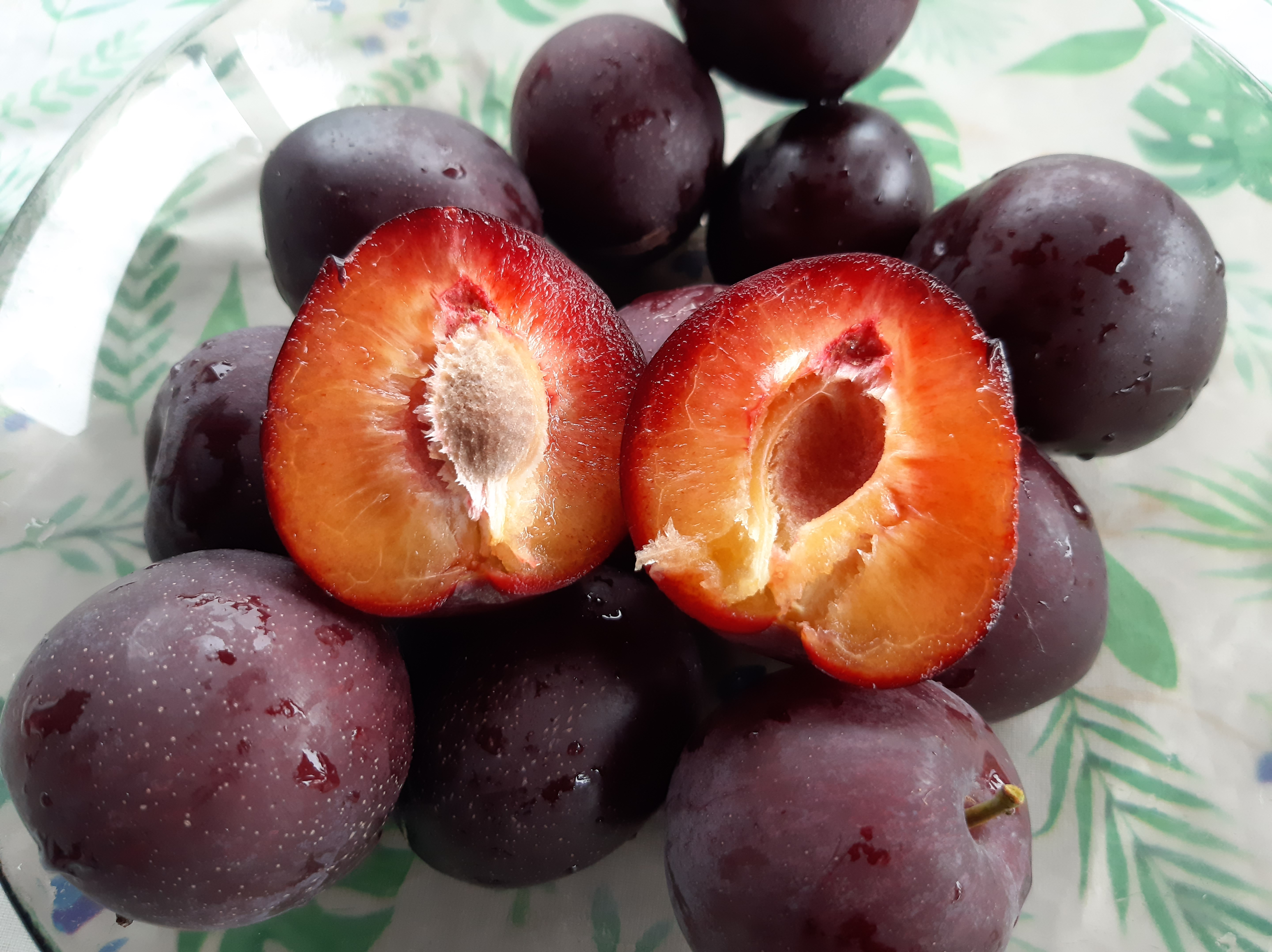 В 2020 году максимальный вес сливы - 74 грамма. Остальные не меньше 60 гр. Нравится, что косточка "условно отделяется" от мякоти. Для этого надо сливу разрезать, и после этого она разделяется на две половинки. Косточку в одной из половинок достаточно легко можно поддеть ножом и извлечь.