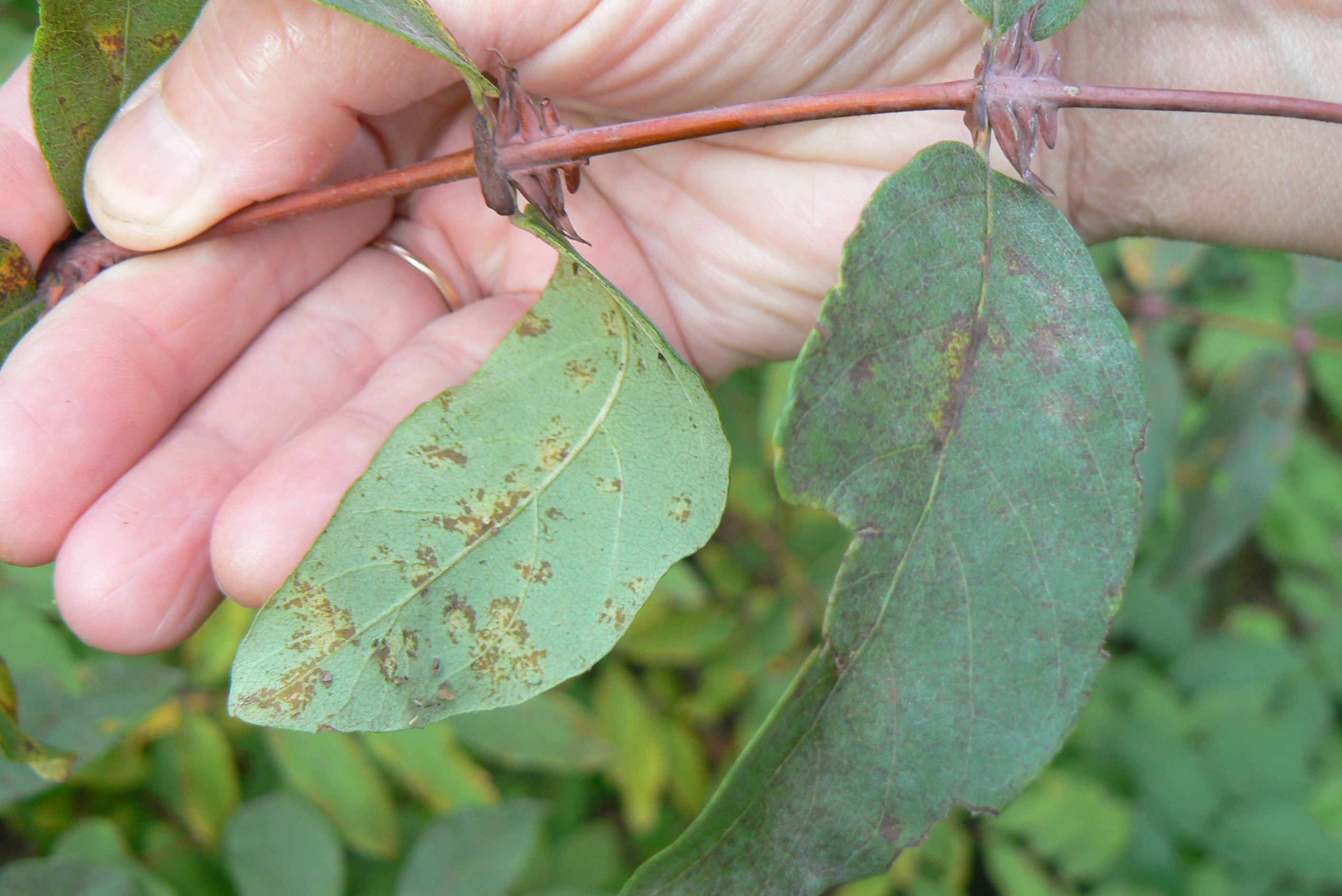 Заинтересовала меня тема жимолость и мучнистая роса. Потому что самый простой метод борьбы с любой заразой для непрофессионала - это приобретение устойчивых сортов. Погуглил. Нашёл тут прелюбопытнейшую статью на английском "Мучнистая роса и солнечный ожог у жимолости" от Боба Борса, Елены Савчук и Джилл Томсон. В статье также обсуждается некроз листьев. Я не всё понял, статья научная, не популярная. Понял, что причина некроза листьев не установлена. Есть гипотезы, что это следствие взаимодействия с насекомым или вид солнечного ожога. Предположительно причины физиологические, не патогенные. Другие гипотезы - что это следствие взаимодействие с грибками или метод профилактики растением заражения грибком.