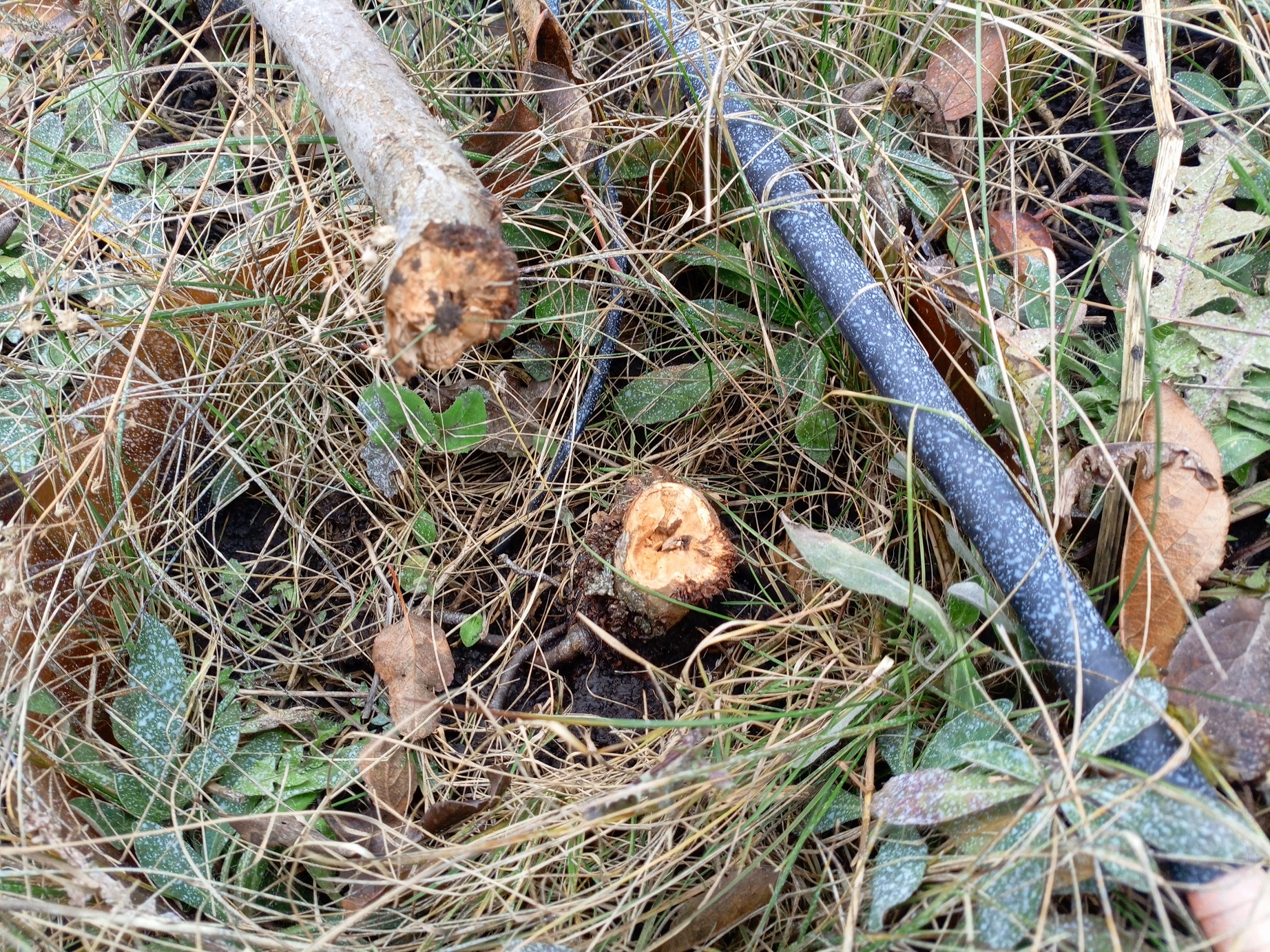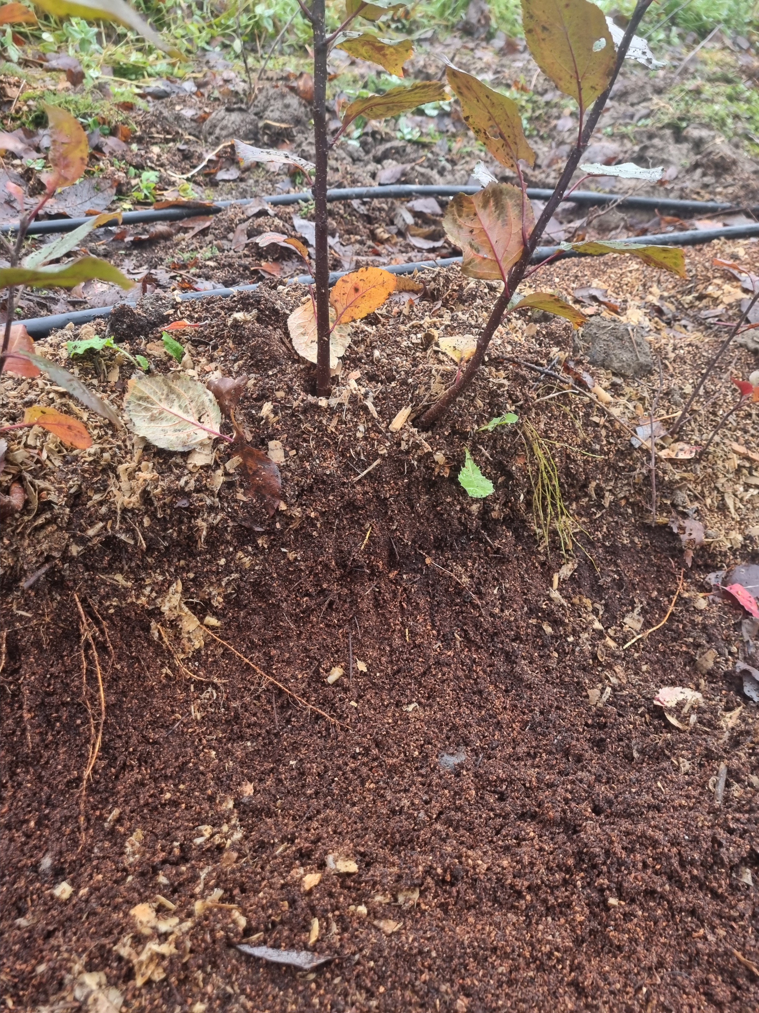 Листья ошмыгал. Можно было ещё подержать в маточнике, пока снега не ожидается и положительные температуры, но решил с посадками завершить на этот сезон и сосредоточиться на других делах, например строительстве шпалеры.