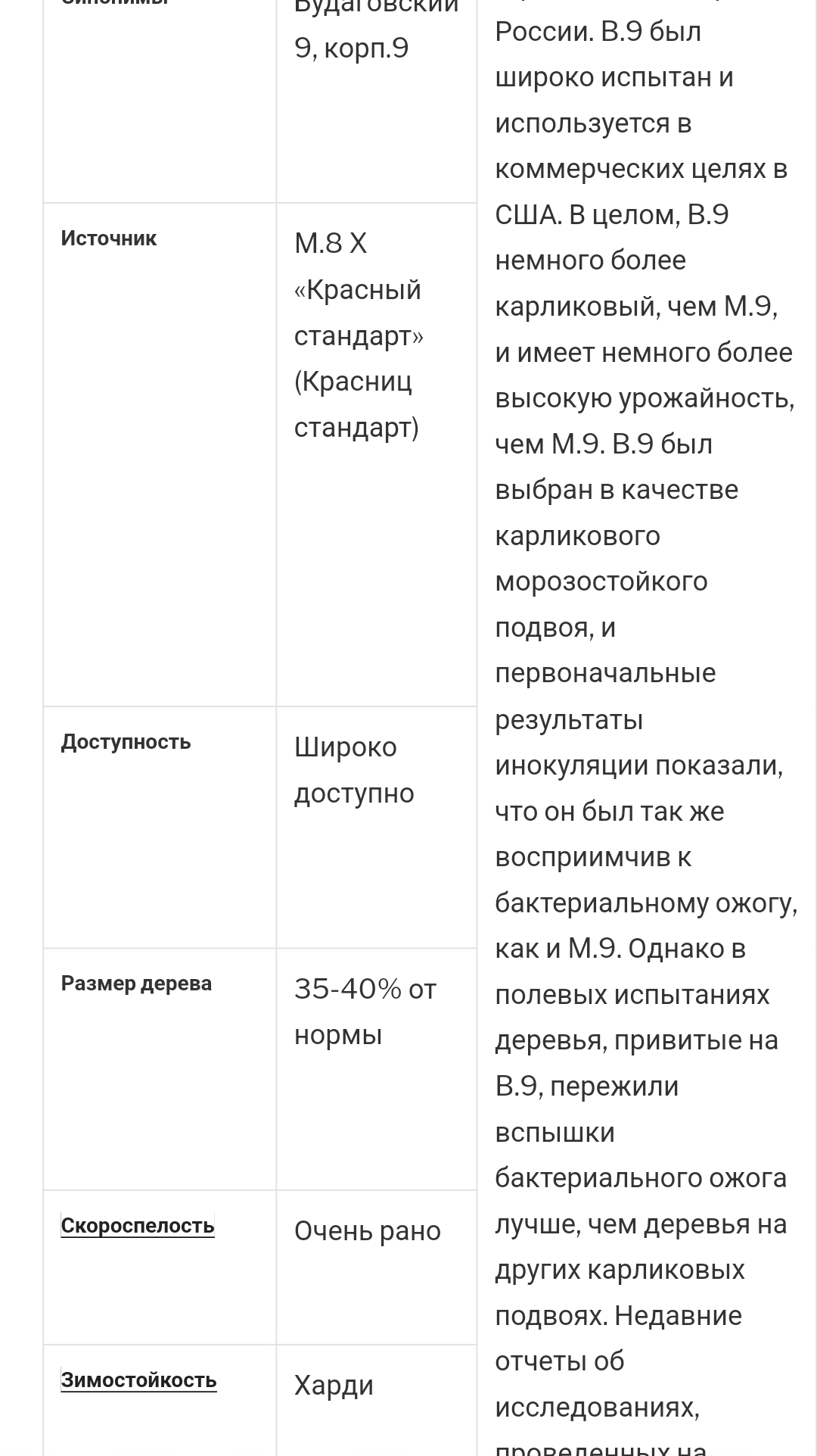 Доброго.Добавлю и я свой отзыв,по этому подвою,есть такой же отлом,более характерен для не совместимости,Моди 4-х летка,на хорошем колышке,внезапно усохла,когда наклонил,сразу отломилось в месте срастания(окулировка),есть ещё достаточно сортов на нём,буду наблюдать,в нашей жаре,оказывается,более устойчив к засухе,чем М-9.