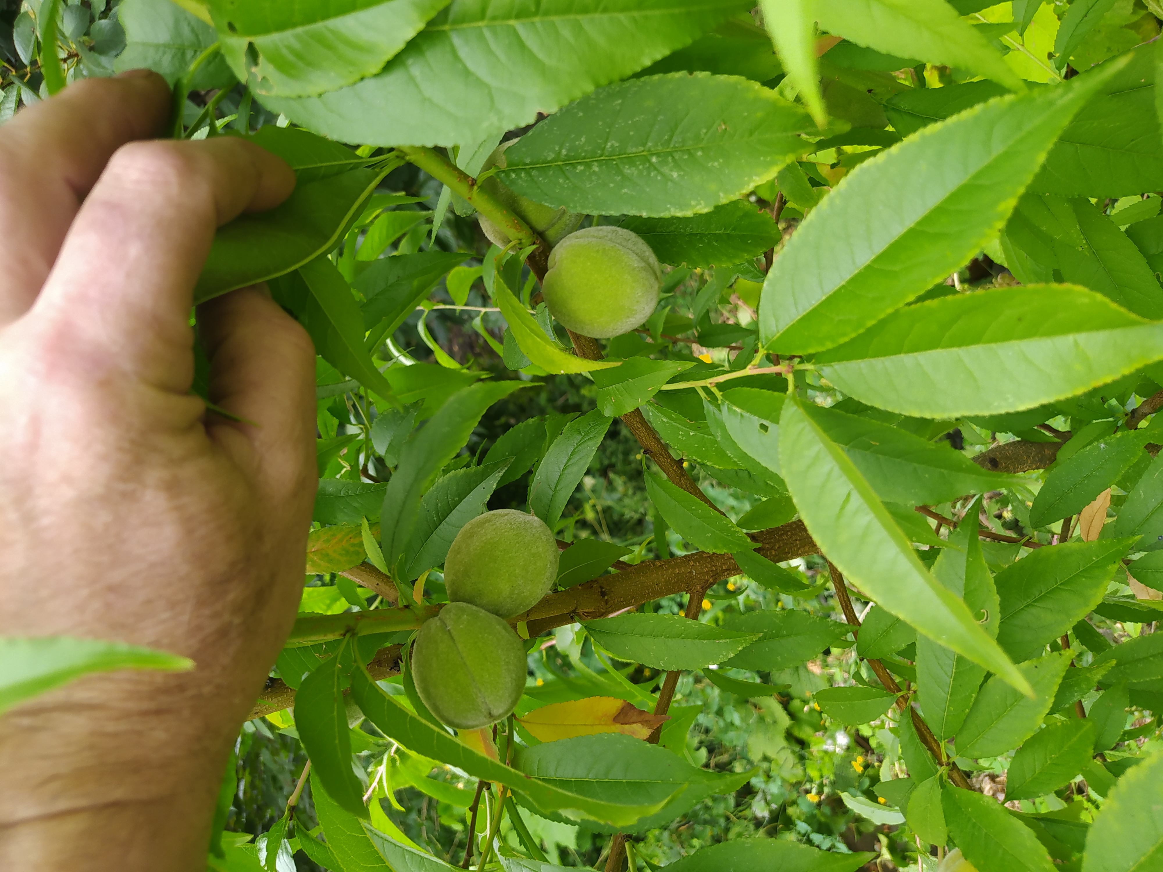 В этом году весь сад стоит в чаталах (подпорах). Июнь простоял "голый", а теперь видно, что урожай зреет обломный. Вчера и обломился, оголив неудачно середину кроны, сук с персиками на Фаворите Мореттини. Придётся готовить к работе сушилки.