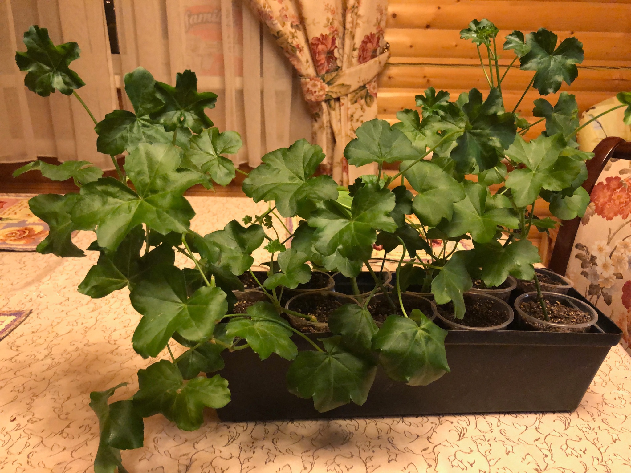 Плющелистные ни разу не получилось укоренить! Видимо не мое это... А обычные пеларгонии, зональные и королевишны, зимуют на окошке. Вот стелларов маловато, всего три штуки. В конце февраля обрежу, что-то укоренится, что-то нет... но из семян они другие вырастают, более компактные.