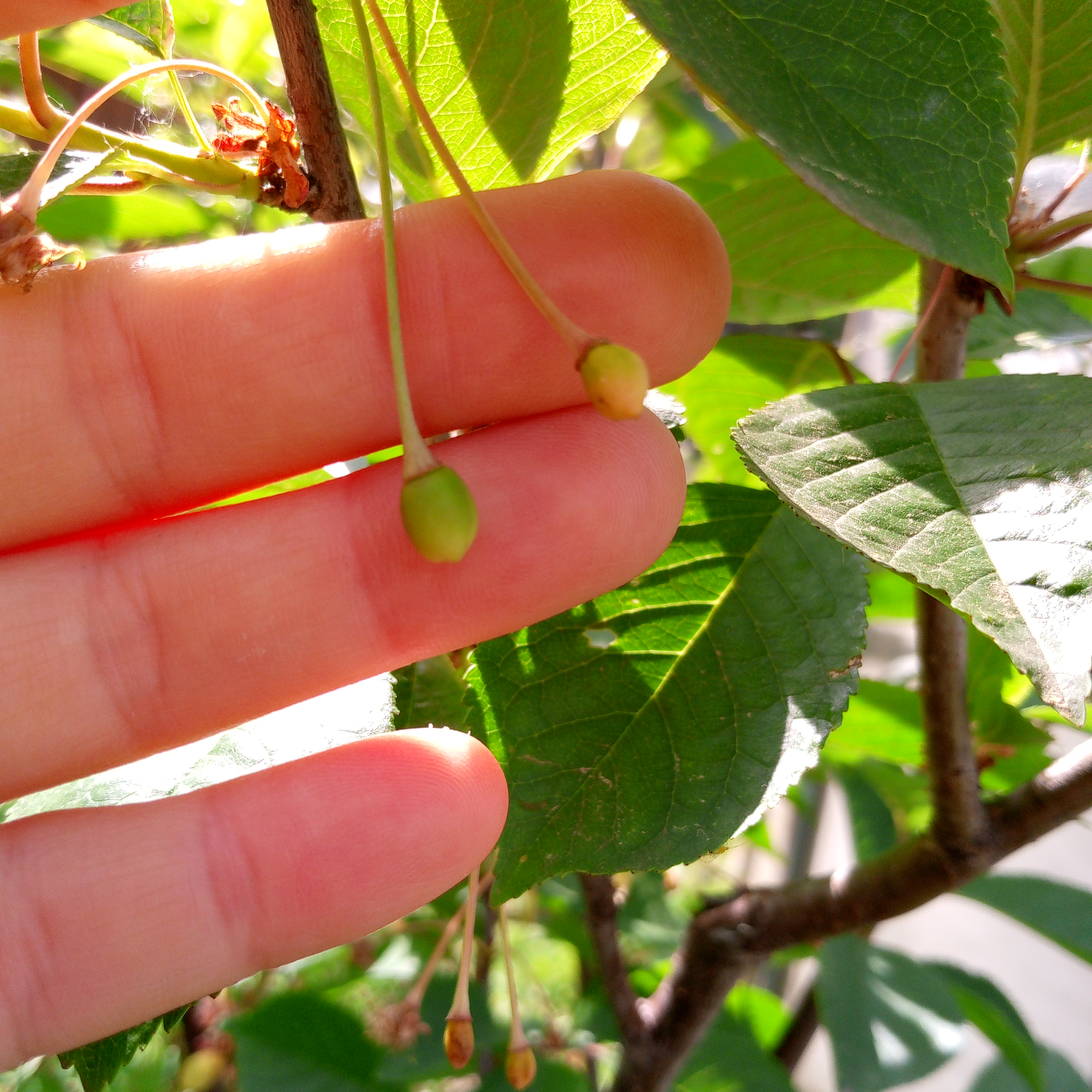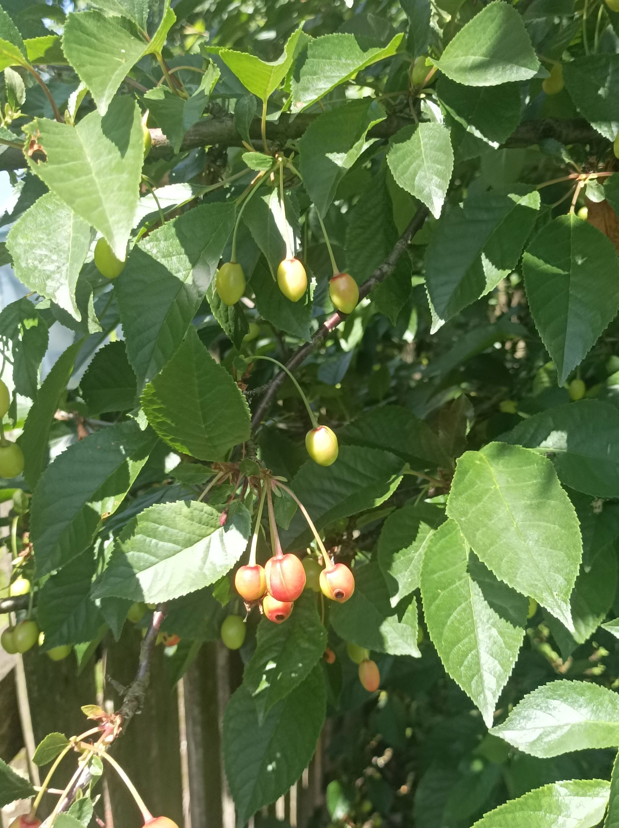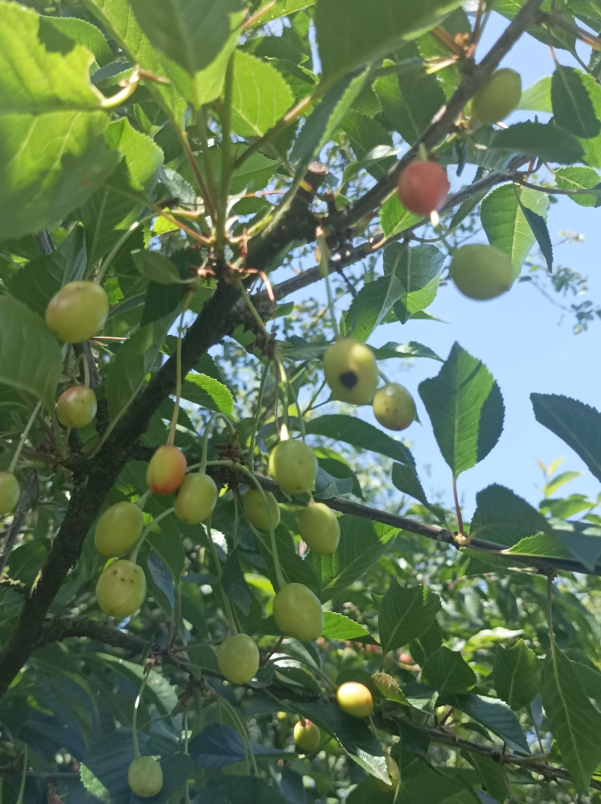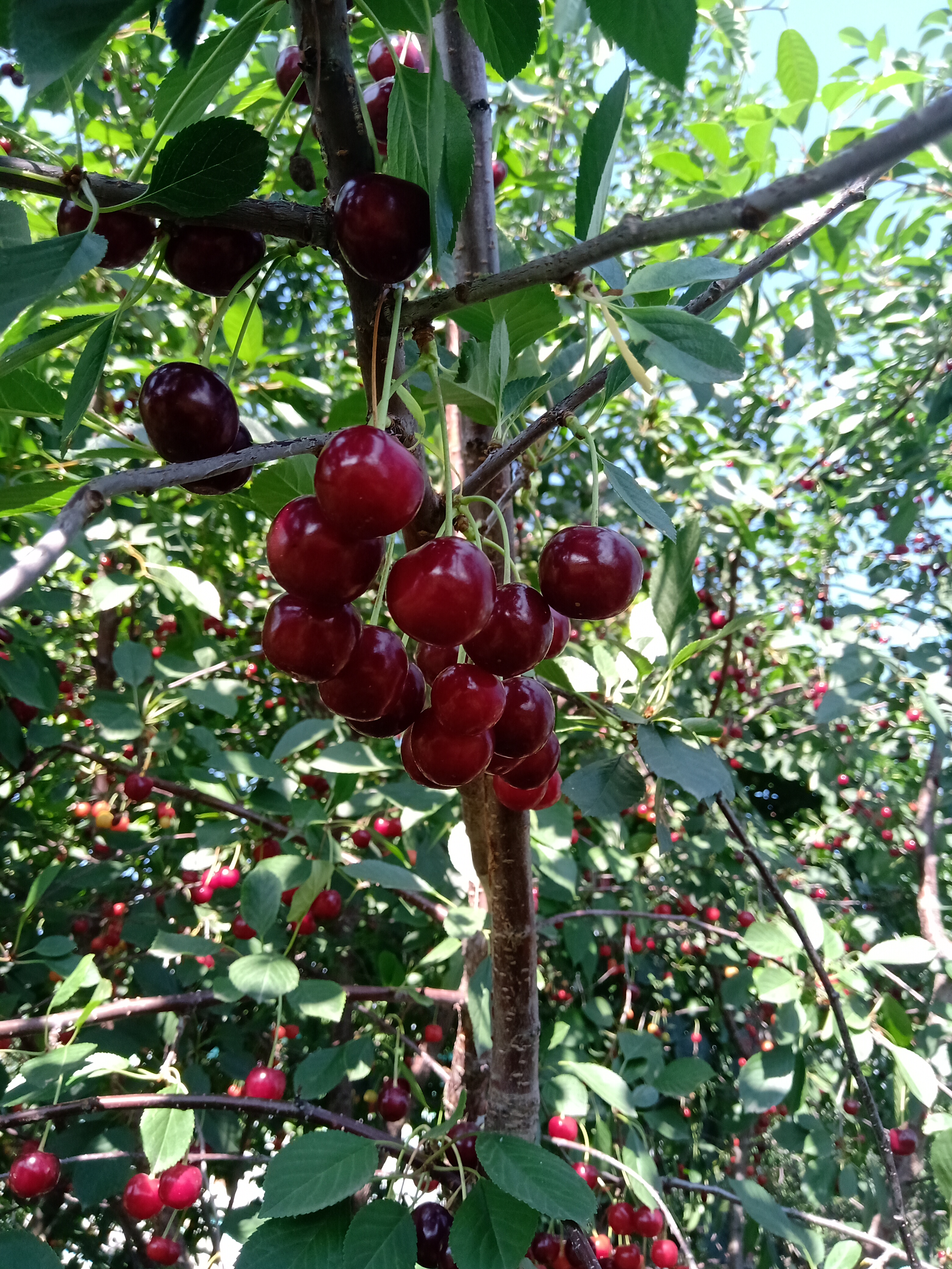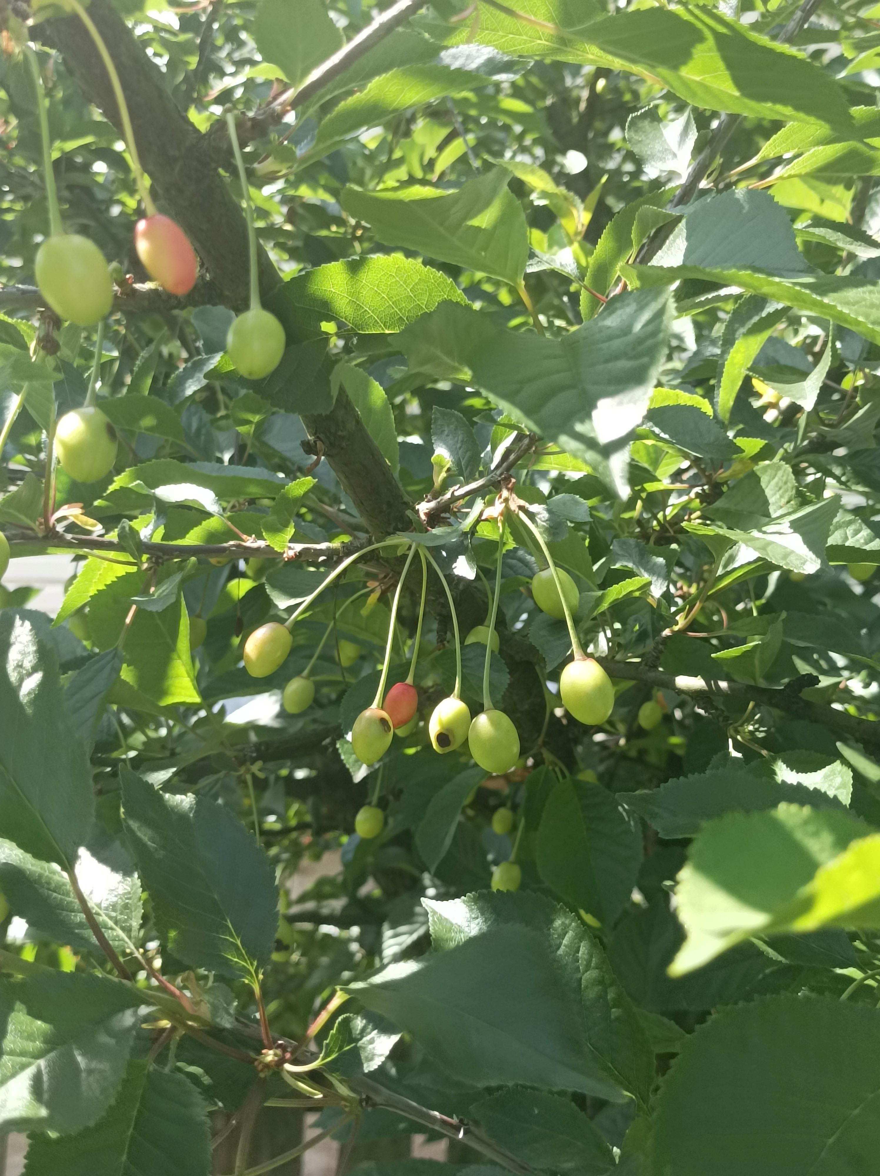 Я на прошлой неделе думал это на прививке Игрицкой почти созрели плоды, но оказалось это вишня от знакомого, он не знает сорт, называет Шар, потому что она прям только на букетных веточках плодоносит, компактная, как шарик. Игрицкая тоже есть, но пока не созрела, будет в следующих дегустациях.