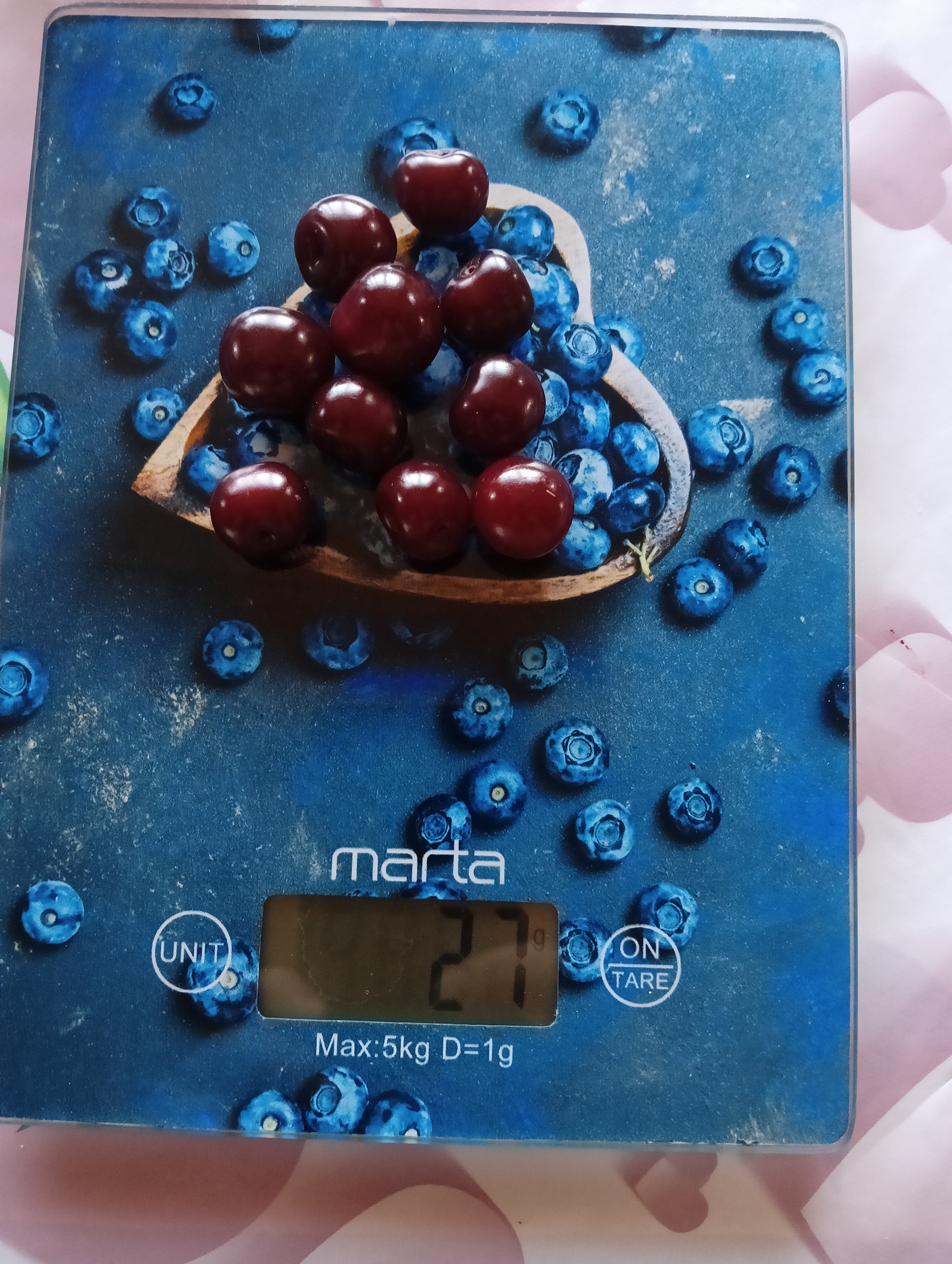 Для сравнения размеров положил черешню Троснянскую. У неё есть какая-то вишнёвая кислинка, но если пробовать её после вишни, кажется аж приторно-сладкой, реальная разница в кислотности конечно сильная