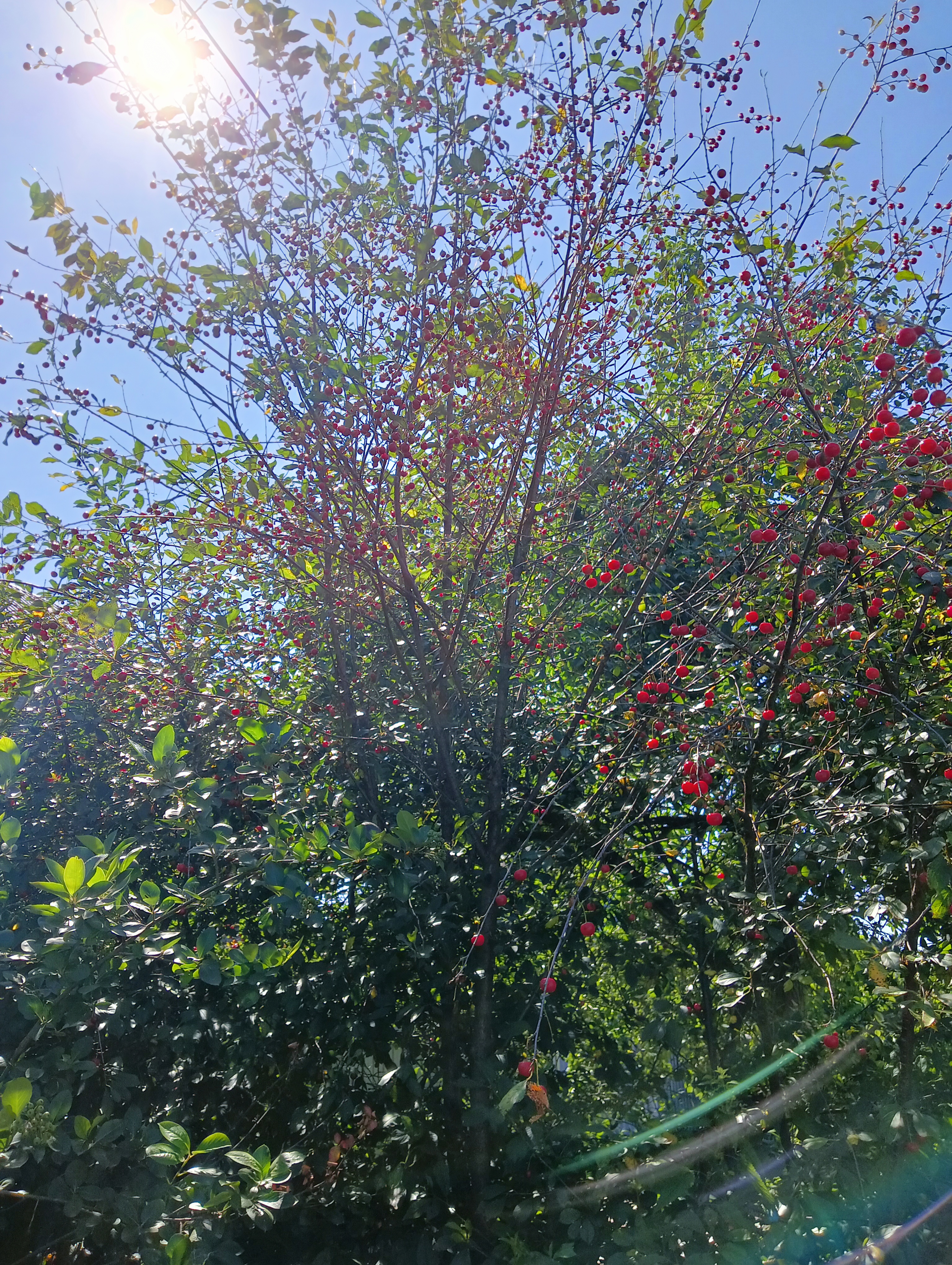 Путинка - первые созревшие ягоды. На фото попалась чуть недозревшая, так они заметно темнее. Отличный вкус. Лучше всех прошла заморозки, с небольшого привитого деревца плодов будет литров пять. На остальных сортовых - единичные плоды, на некоторых порослевых чуть получше.