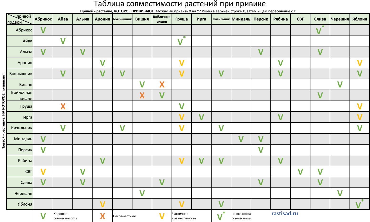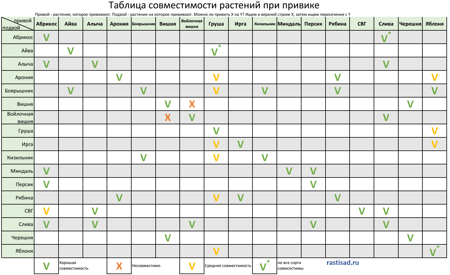 А может что известно по несовместимостям? Что точно не прививается друг на друга?