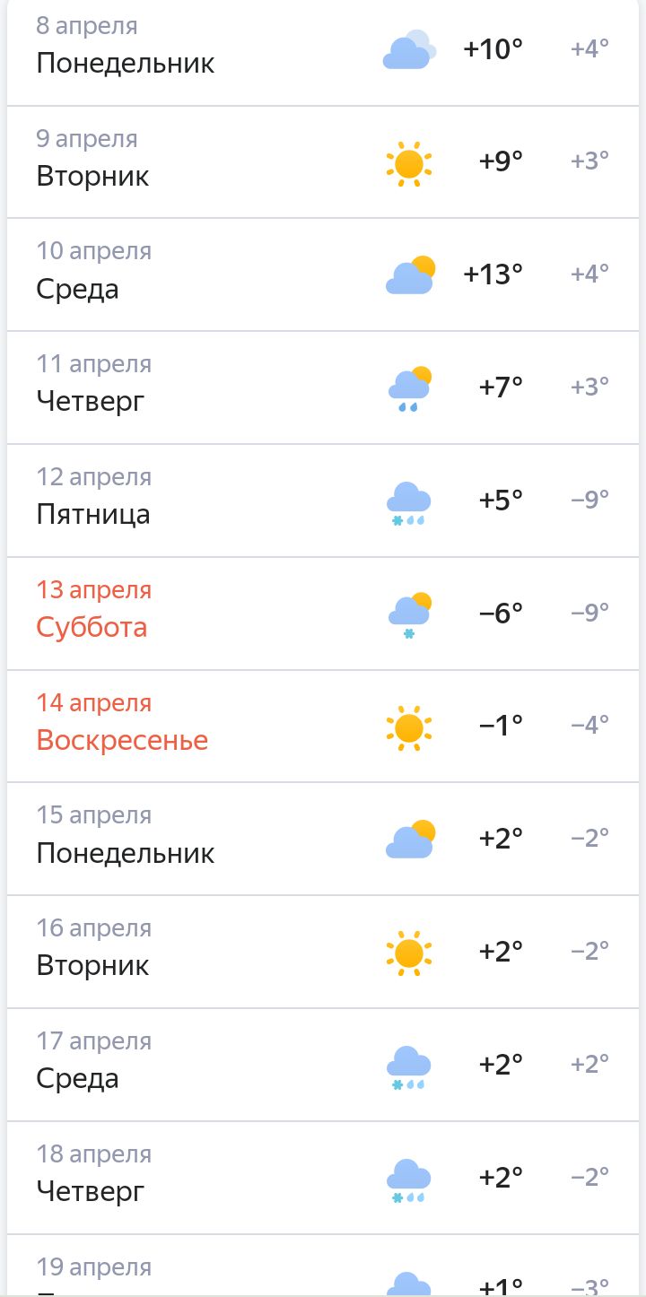 Не знаю, как у Вас, у нас погоду на неделю нормально предсказать не могут. Так что еще погода не известно какая будет. А сокодвижение у нас, я обратила внимание на калину, жимолость, смородину, начинается. У нас, в некоторых местах сугробы по колено, а под снегом уже вода.