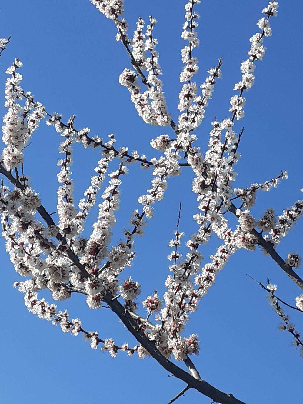 В этом году абрикосы цвели не очень, и на этом фоне порадовал молодой абрикос Огни Челябинска - единственный цвёл в полную силу, за что и был отобран. Это первое цветение, отпишусь позже что за плоды
