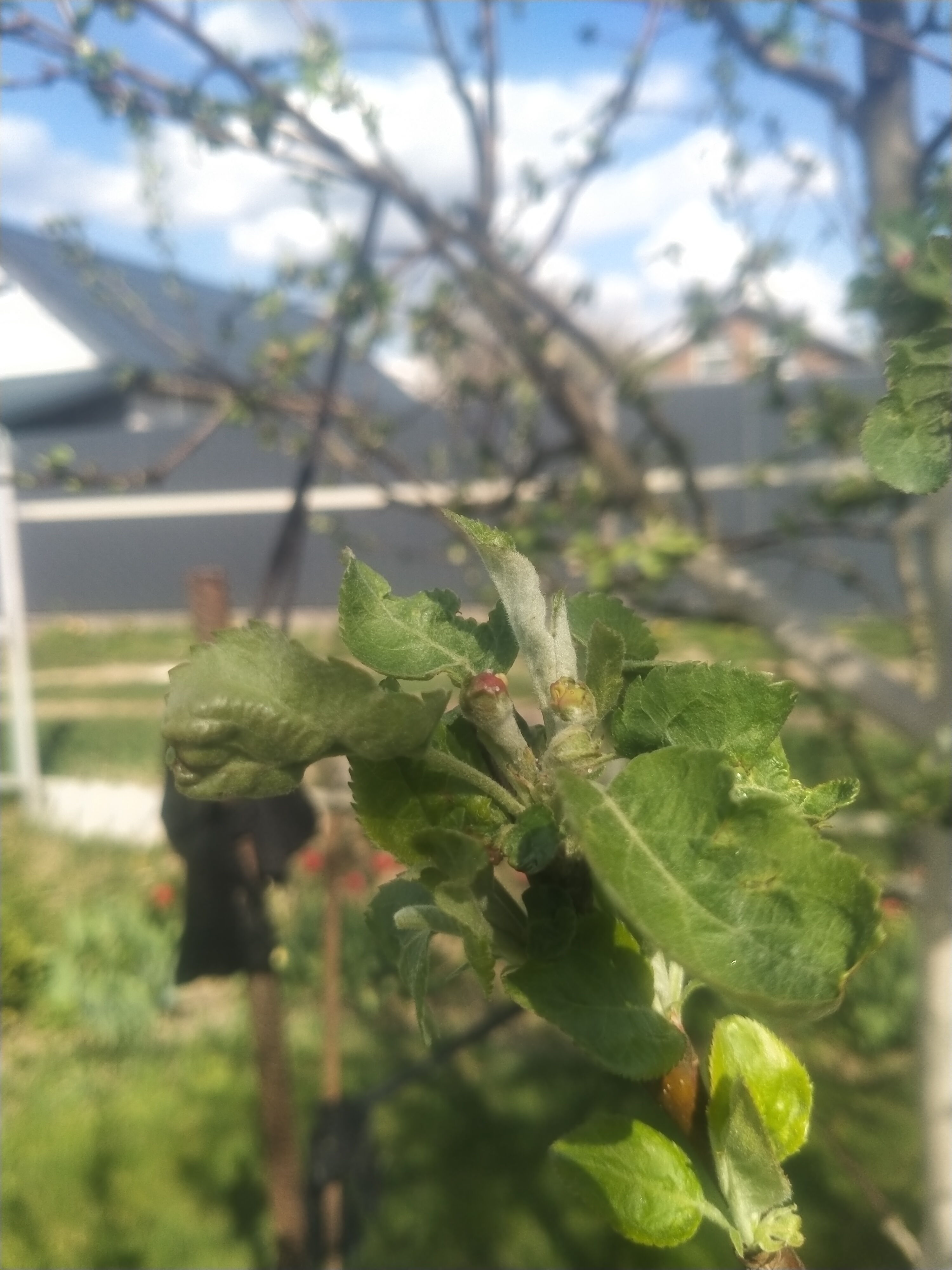 Такая вот напасть приключилась на молодых яблонях.