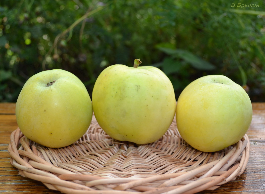 Эту я зову Башкирский красавец, он ? Типа как грушовка, есть очень слегка вяжущее свойство. Кисло сладкая, кислоты больше, если полежит — нормализуется.