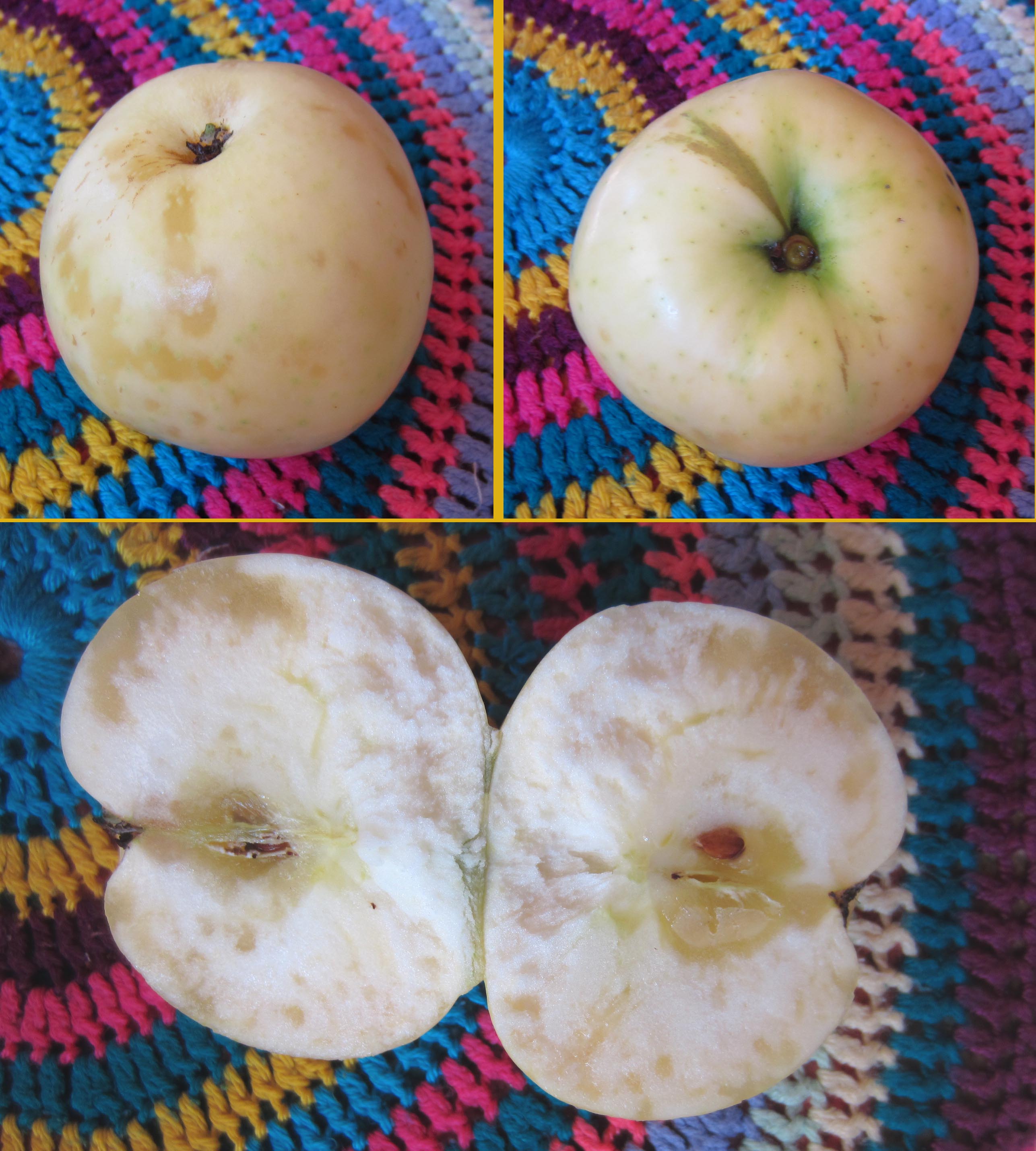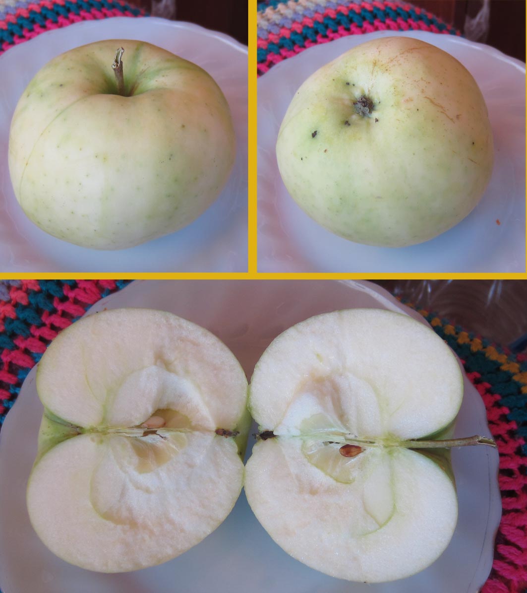 году покупал там же позднее уже более желтые явно те же яблоки. Второй раз в жизни такие встречаю там же и в тоже время сезона . Визуально что то среднее между Голденом владимирским и чешским Опалом. Сочные, кисло сладкого сбалансированного вкуса, при дозревании желтеют, остается легкий румянец иногда местами. Что это?