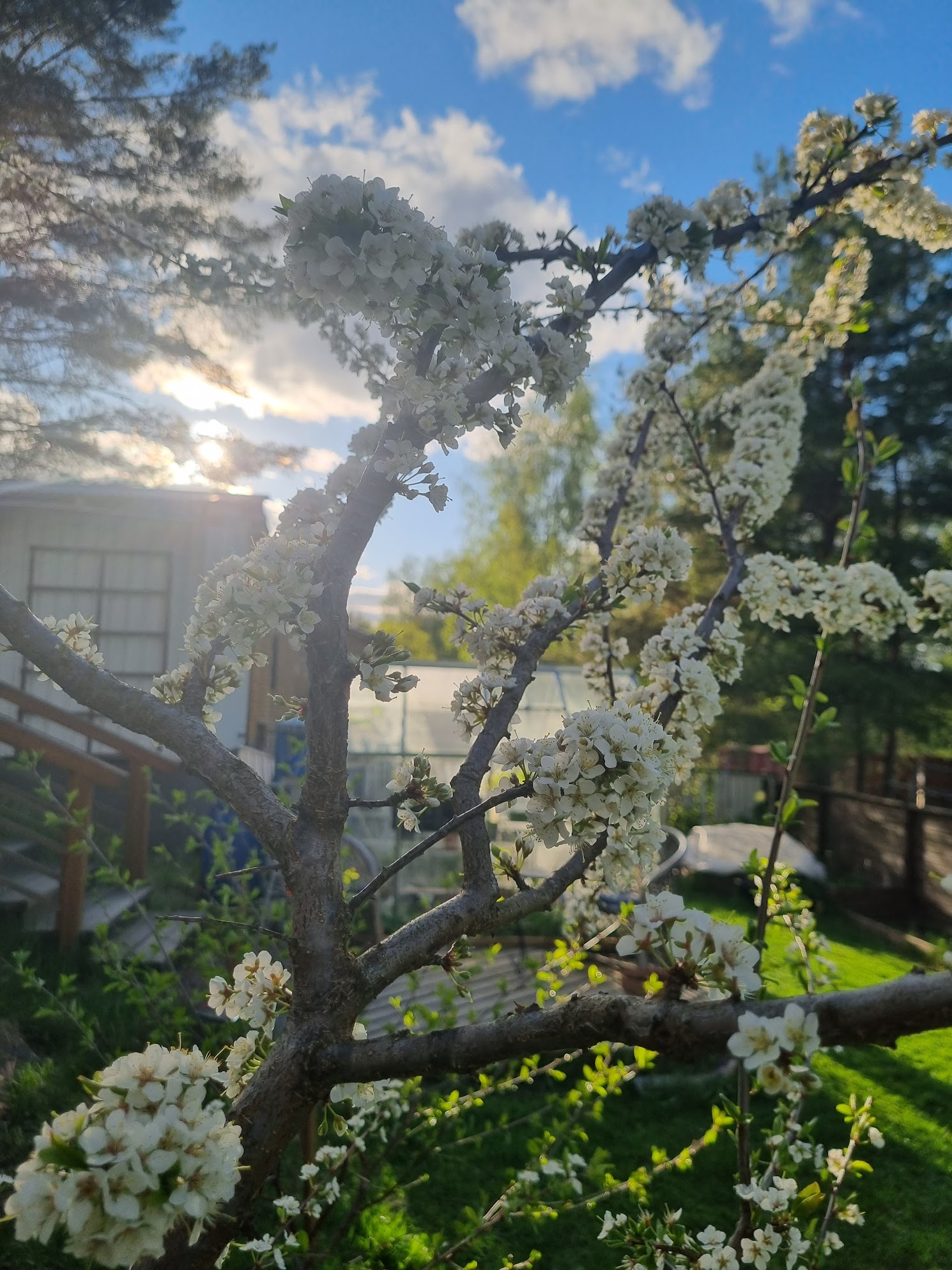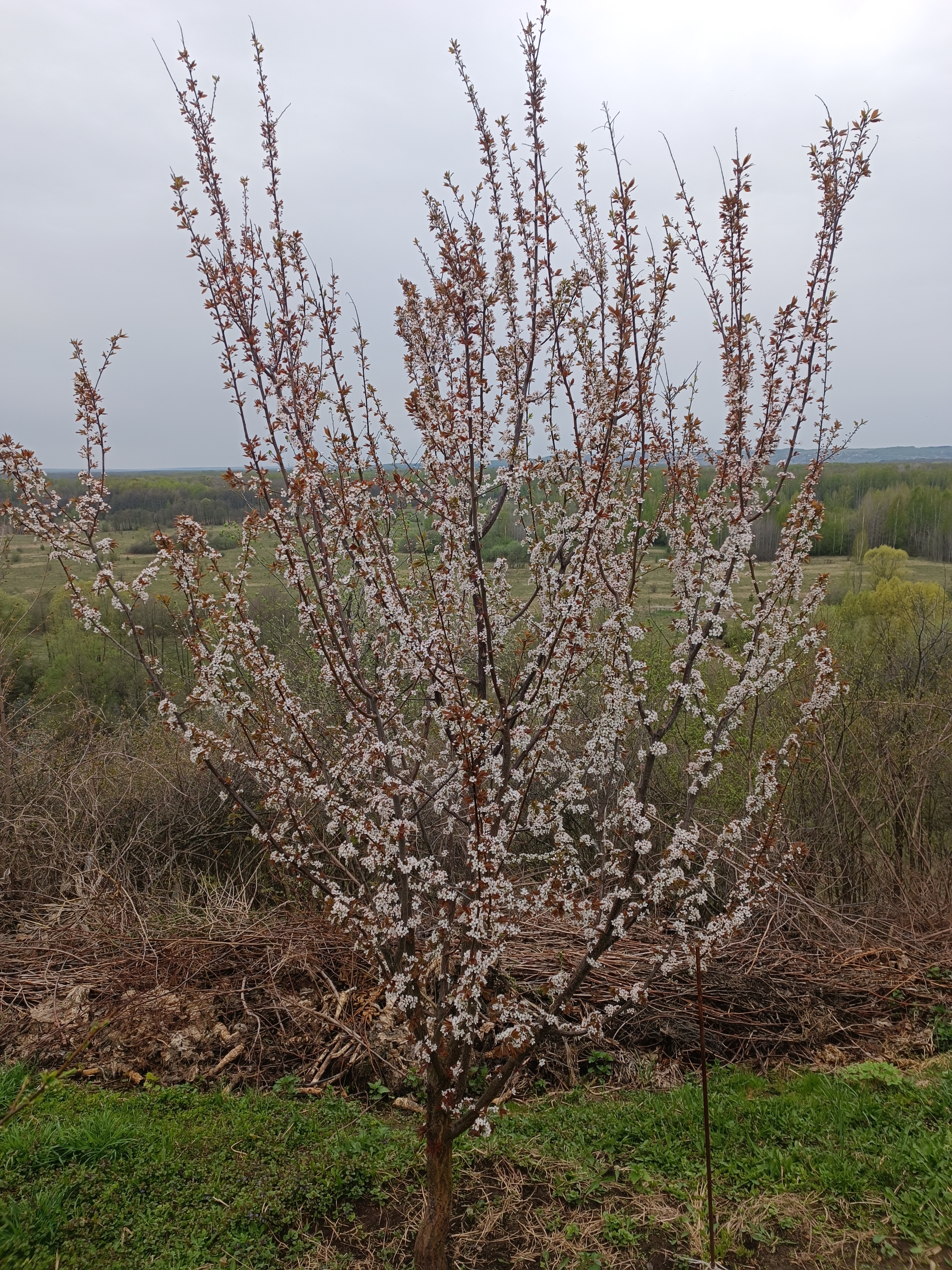 Цветение гибридной алычи (сливы русской) Подарок СПб на востоке Ивановской области.