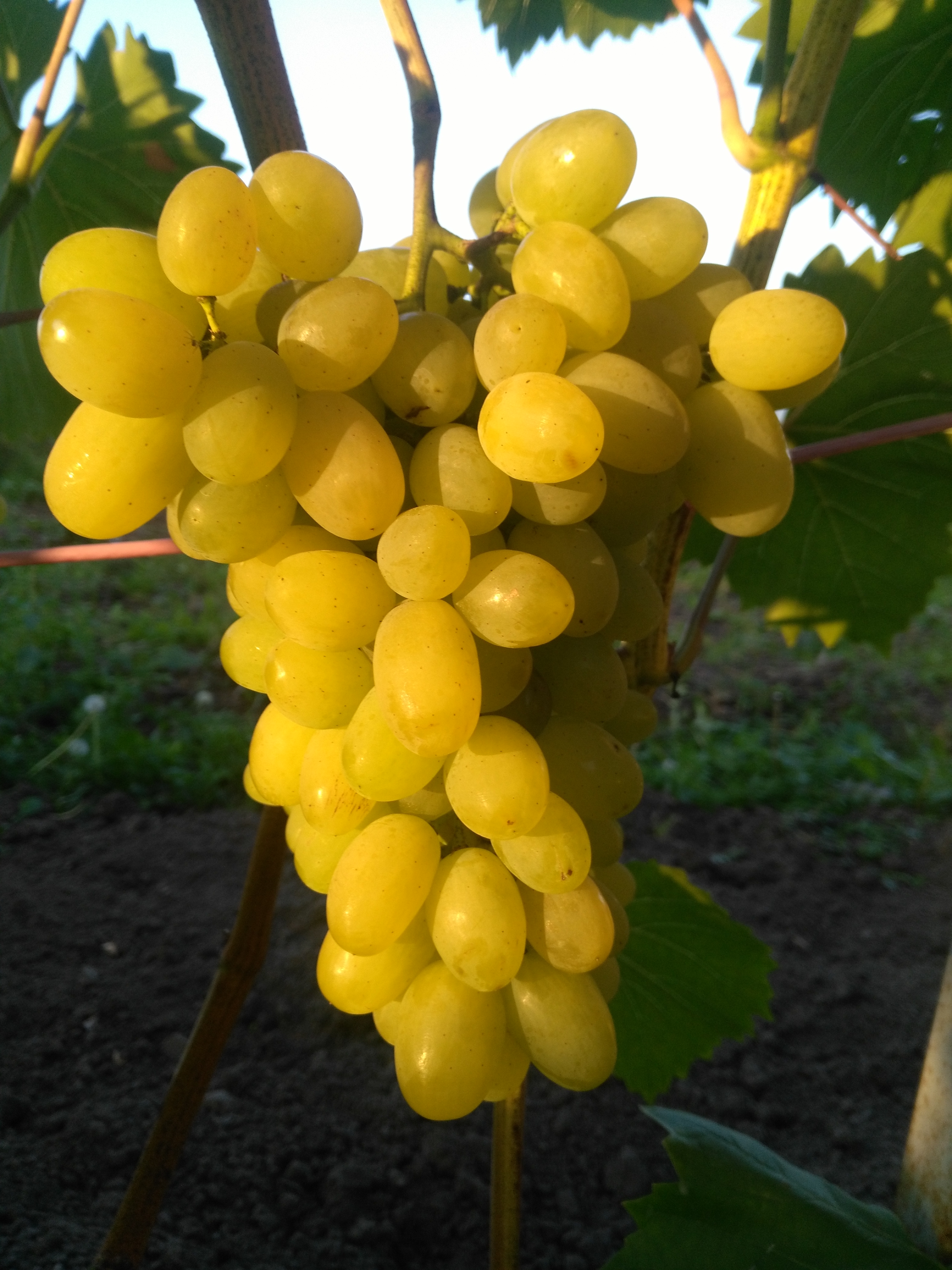 Рома, возможно это связано с перегрузом куста для наших условий - на фото у тебя есть побеги с двумя гроздями, тем более, если куст мододой. На Августине, не смотря на его сильнорослость, оставляю по одной полноценной грозди на побег. Чтобы избежать жирования гружу его пасынками. Августин полностью созрел. Ягода сладкая (18 brix), мармеладная мякоть, вкус гармоничный. Был период, когда начал потрескивать, причем не сразу после проливных дождей и осы тут же прочухали, что есть чем полакомиться. Треснутые ягоды убрала и грозди спрятала в мешочки. Сейчас ягоды стали увяливаться и тоже есть не много испорченных — не висит долго. Общая нагрузка с куста в этом году получилась около 10 кг.