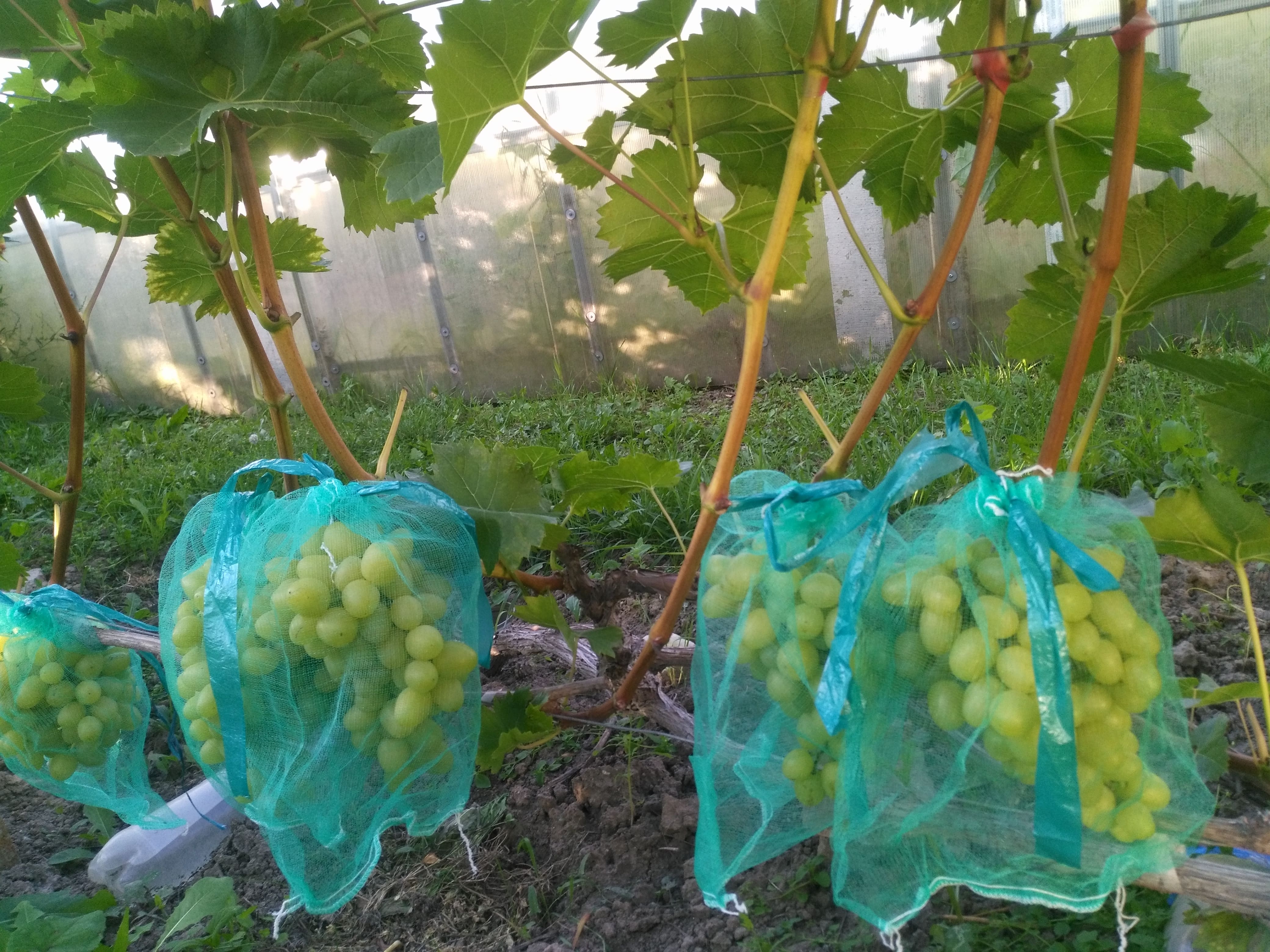 Добрый день,я вчера с полуопазданием одела кисти винограда недоспелых, в покупные мешочки,знакомая поделилась,очень удобно...такие же были испорченные гроздья спелые,осы быстро определяют...
