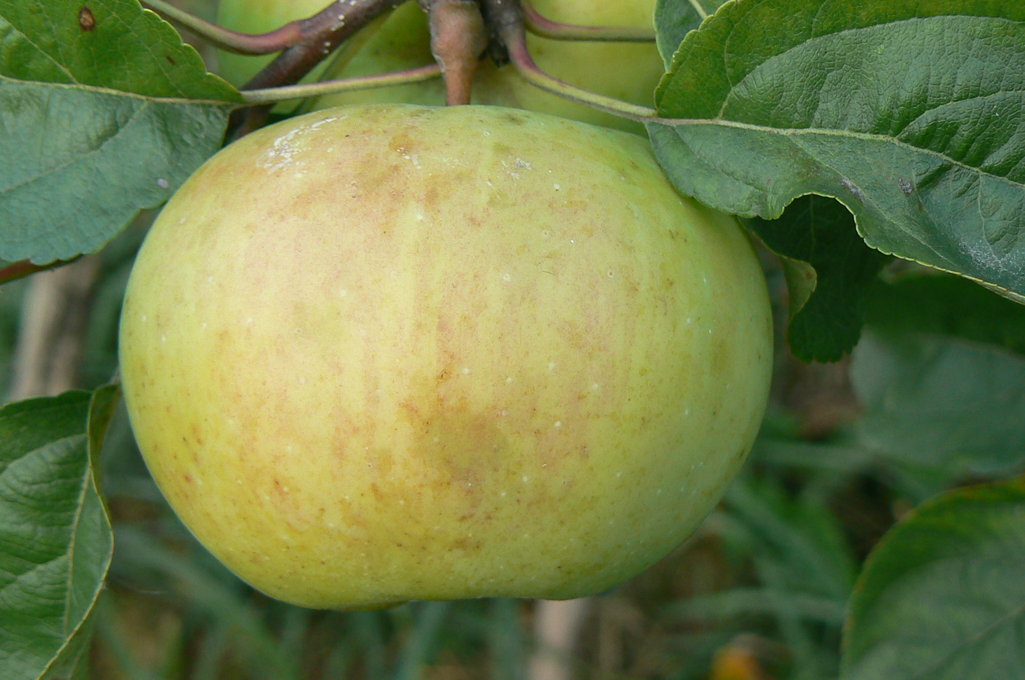 Следующее яблочко получено черенком тоже оттуда же,из Ростка,как граф Эззо.Имеет удлинённую форму кандиля.Зимнее,тоже на вкус приятное.